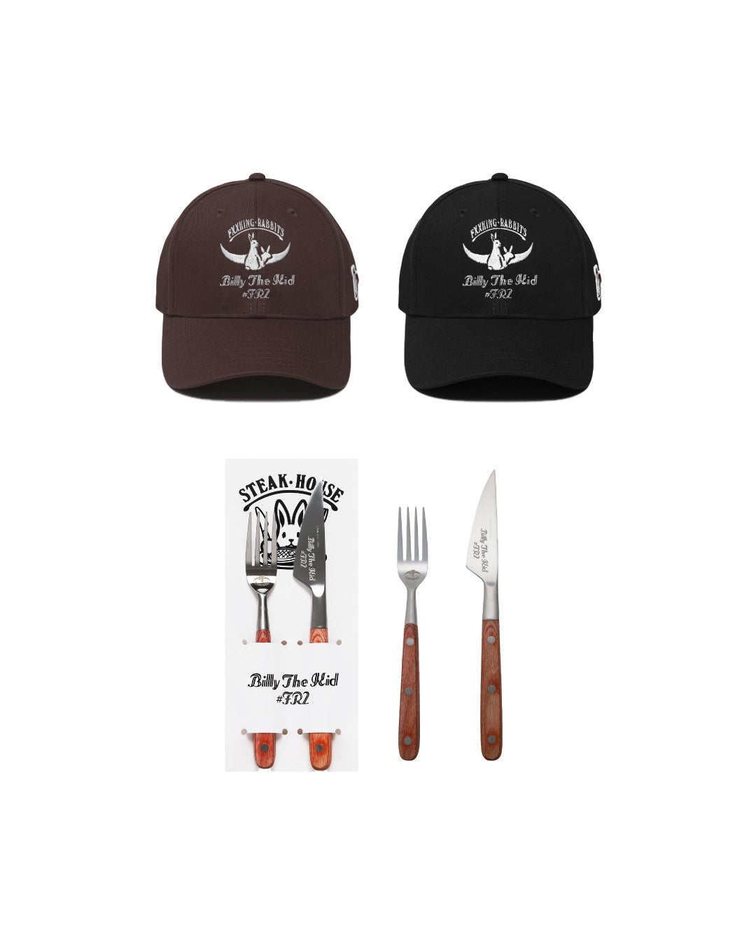 さらに、「ビリー・ザ・キッド」の店舗で実際にステーキ提供時に使用されているフォークとナイフをセットにしたオリジナルカトラリーもラインアップ。カルチャーとユーモアを掛け合わせ、両者のカルチャーを体現する特別なアイテムが誕生しました。