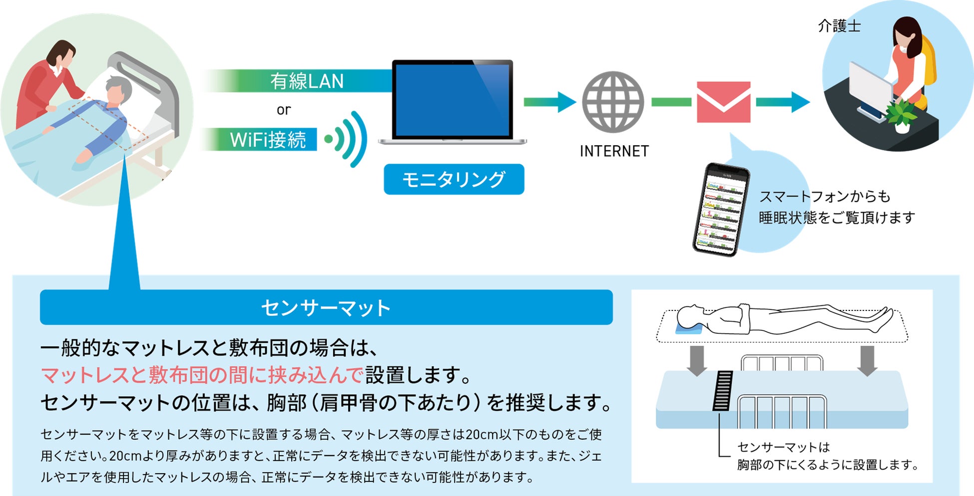マット型センサー「睡眠見守りシステム みまもり~ふ」が介護記録管理システム「ブルーオーシャンノート」と睡眠データの自動連携を開始