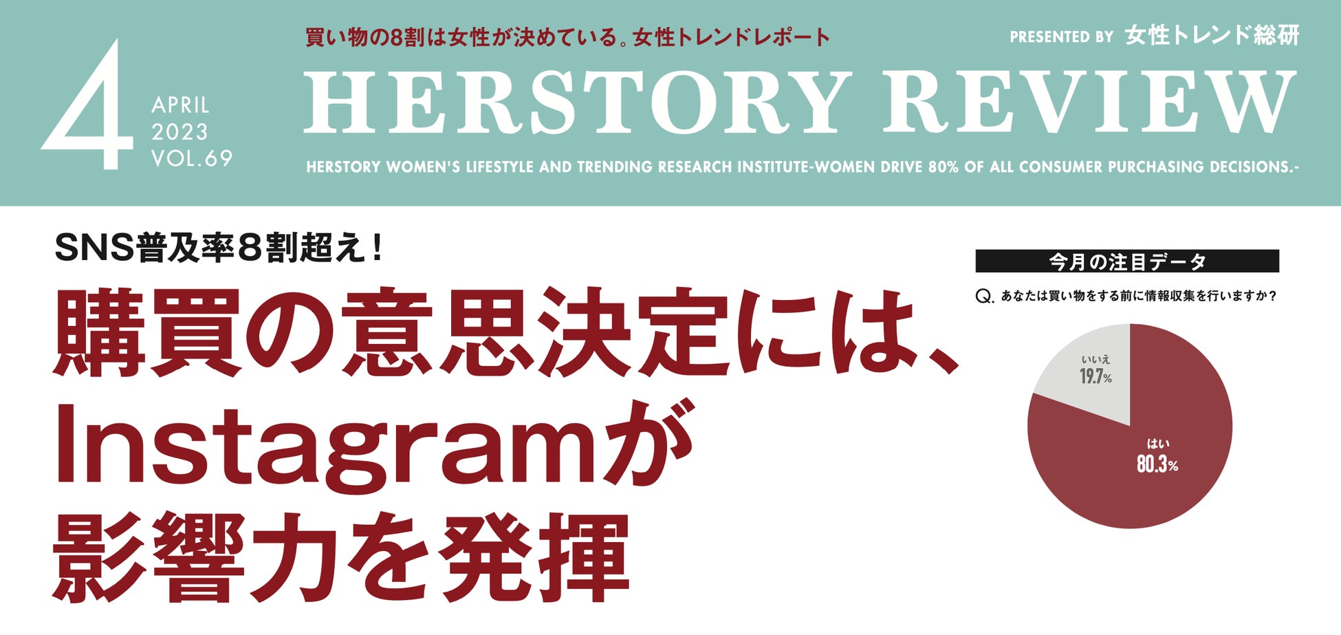 女性トレンド総研が消費の8割に影響を及ぼす女性の消費動向、市場の最新トレンドを毎月追いかけており結果の月刊レポートを展開し各企業のマーケティングに幅広く活用いただいています。本リリースの調査の詳細は4月号のHERSTORY REVIEWをぜひご覧ください。