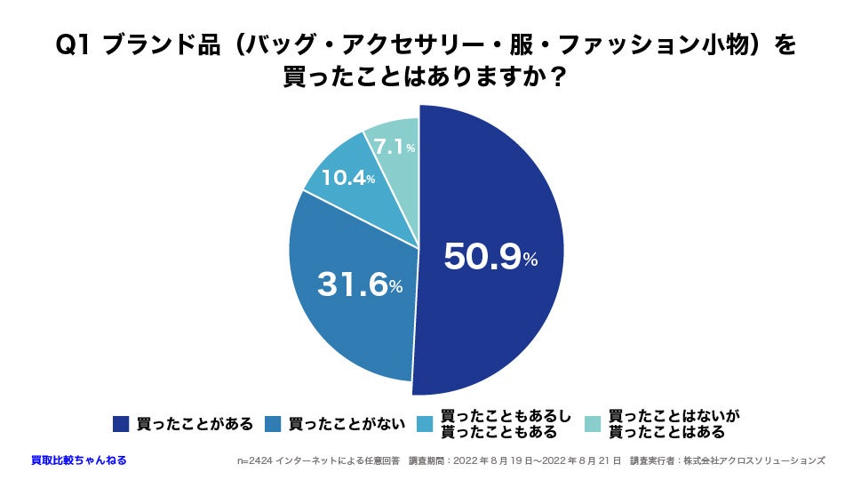 株式会社アクロスソリューションズと株式会社浜屋が共同運営している買取比較ちゃんねる(URL:https://www.hamaya-corp.co.jp/media )は、20歳以上の男女2415人を対象に「ブランド品に関する意識調査」を実施しました。