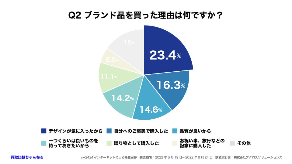 ブランド品を買った理由として最も多かったのが「デザインが気に入ったから」で23.4%でした。