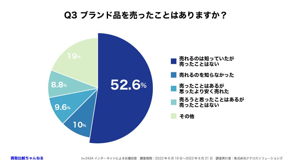 そこで、株式会社アクロスソリューションズと株式会社浜屋が共同運営している買取比較ちゃんねる(URL:https://www.hamaya-corp.co.jp/media )は、20歳以上の男女2424人を対象に「ブランド品に関する意識調査」を実施しました。
