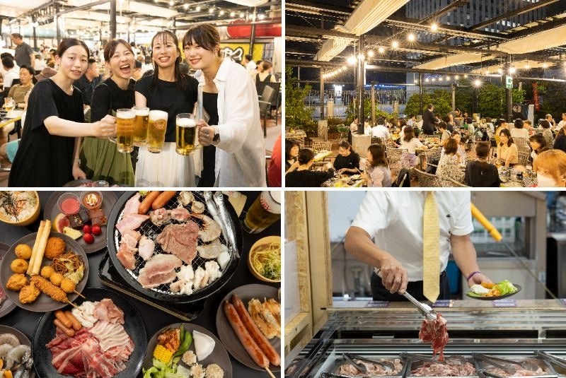 1日の販売量が3,000リットルを超えるなど盛況を極めながらも、ビルの建て替えに伴い、2013年5月に「名古屋三越栄店」の屋上に移転しました。雨でも安心な開閉式テントを常設し、大型LEDビジョン完備のステージでは専属アイドル“マイちゃんアミちゃん”などがパフォーマンスを披露。100種類以上の食べ飲み放題バイキングはもちろん、2002年より大手4社のビールが飲めるようになり、名古屋市民に広く愛されています。昨年には、2号店となる「髙島屋大宮店」を開業、2024年6月21日には3号店として「髙島屋横浜店」を開業します。
