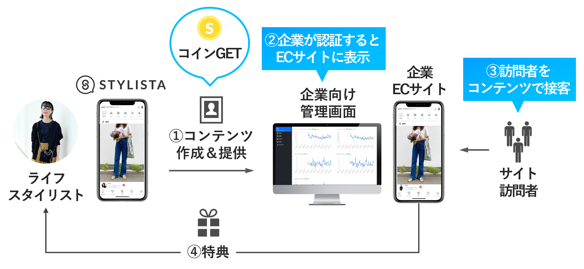 これまでSTYLISTAは、コーディネートなどの悩みを相談すると提案が受けられるウェブ接客ツールを提供してきました。コイン機能の開始を機に、フォロワー数や肩書・所属に関係なく“好き”という熱量があれば誰でもブランドの応援ができ、企業から「感謝(評価)」を受けられる仕組みを導入し、よりファンとブランドが一体となりブランドへのロイヤリティ向上、コミュニティ構築を支援できるようになりました。