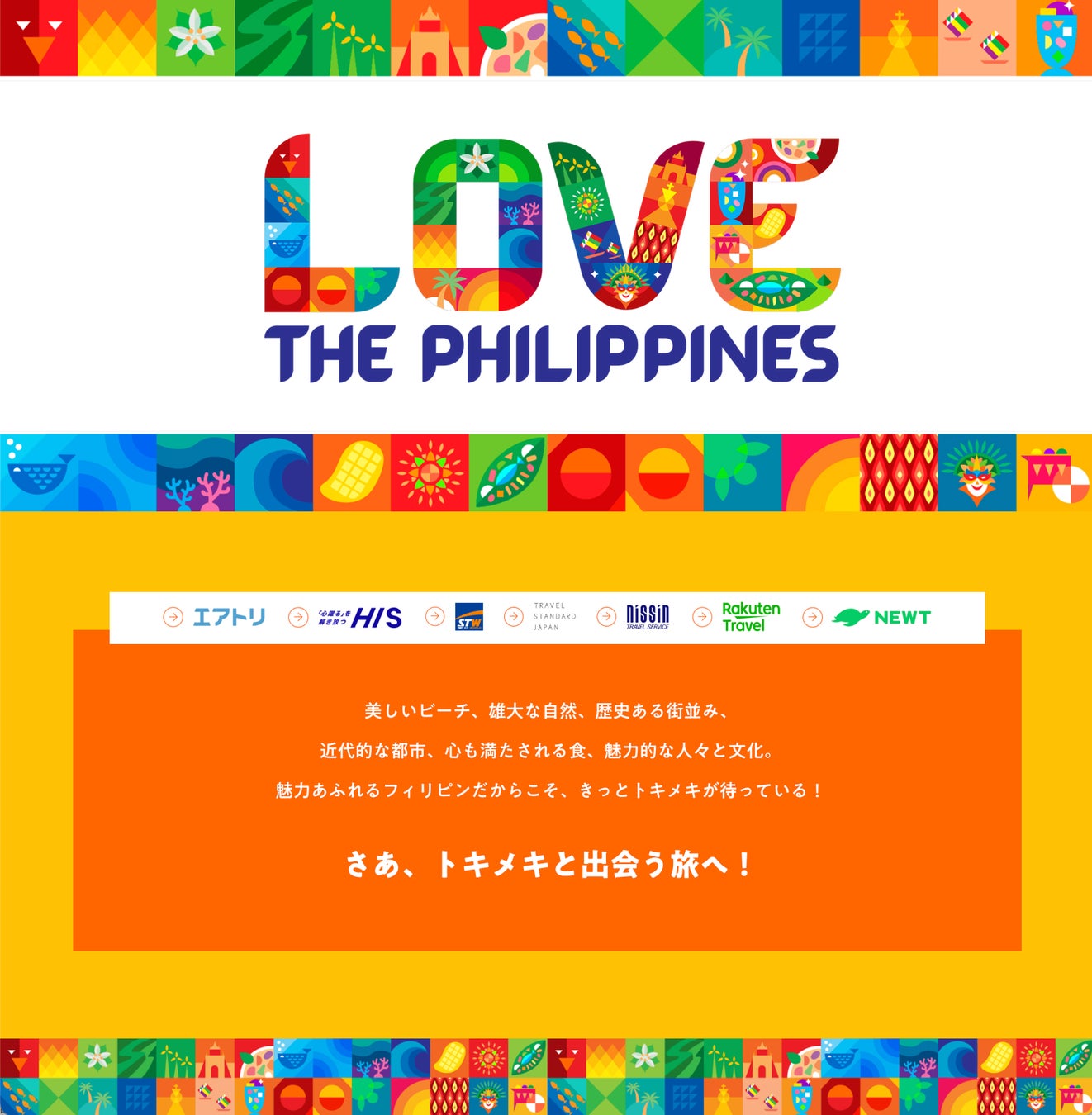 「LOVE THE PHILIPPINESキャンペーン」はフィリピンを訪れる人々に対して、美しい自然や豊かな文化、ショッピングやグルメはもちろん、ホスピタリティにあふれる温かい人々など、フィリピンが持つ様々な魅力を日本国内で伝えていくことを目的としています。
