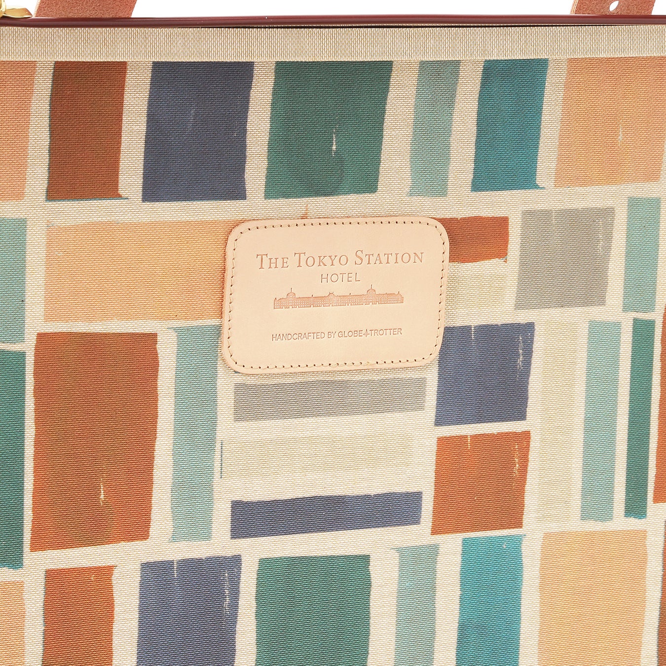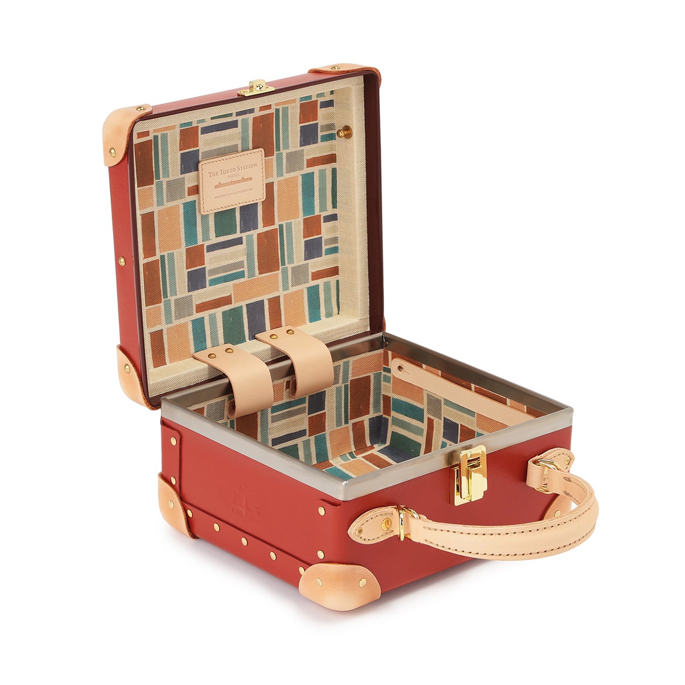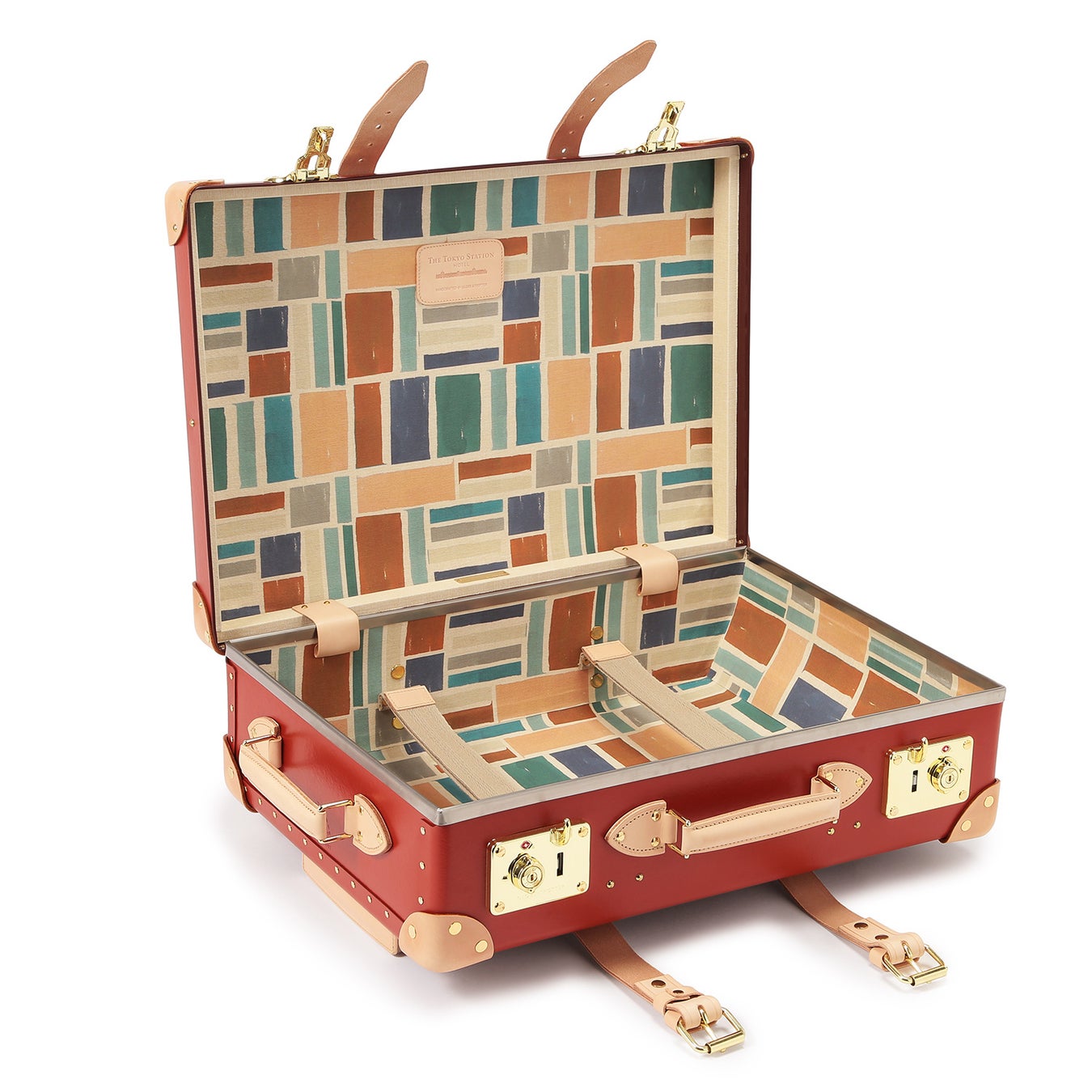 国の重要文化財に指定されている東京駅丸の内駅舎の中に位置し、100年以上の歴史を有する東京ステーションホテルとのコラボレーションでは、東京ステーションホテルを象徴する駅舎の赤レンガから着想を得た、レッドのヴァルカン・ファイバーをボディに、使い込むほどにアメ色に経年変化するナチュラルレザーをコーナー、ベルトに採用。ライニングもマルチパターンのブロックデザインをプリントした特別仕様となります。