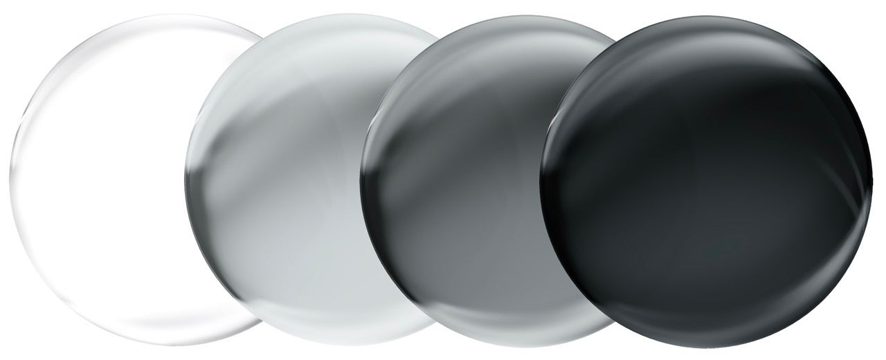 1.クリアからサングラス並みの濃さ(カテゴリー3)になるまでの変化について。トランジションズ® GEN S™️レンズは23℃の環境で反応させると透過率14%未満となり、反応しない環境に置くと透過率70%まで素早く戻ります。