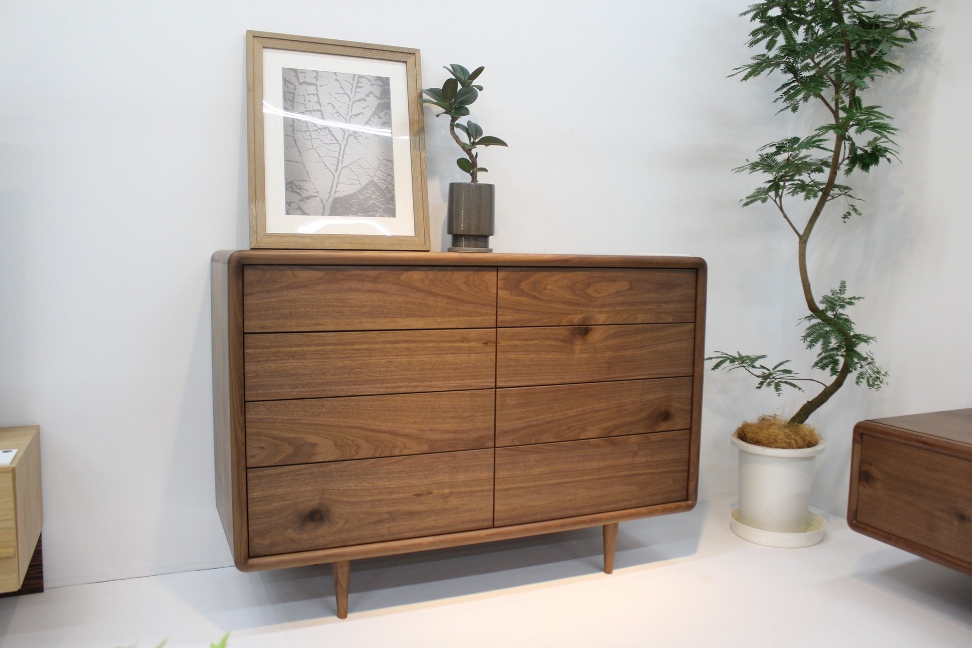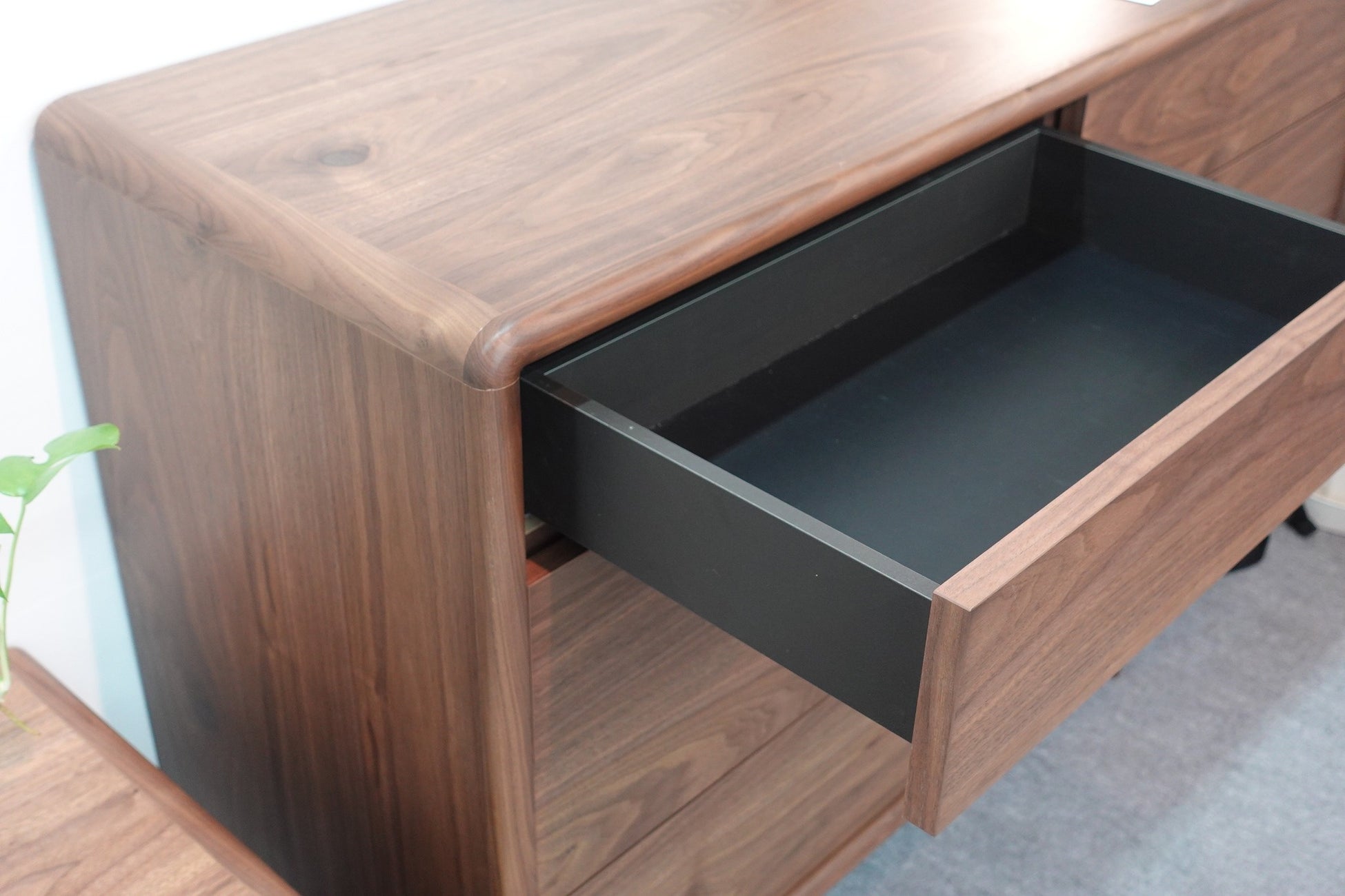 家具の街福岡県大川市の隣町、柳川市にある昭和33年創業の工場で製造された「ミュークチェスト」は、細部までこだわった職人の技術が詰まっています。使用しているオーク材やウォールナット材は、北米から厳選された天然木材を使用しており、長年使用できる耐久性を備えています。また、製造は全て国内で行われ、安心と信頼の国産品質を提供します。
