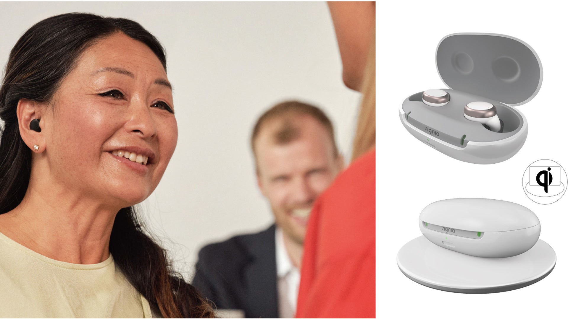 近年多くの年代が使用するようになったワイヤレスイヤフォンは、「耳に何かを入れている」という状態を、楽しいもの、誰にでも起こりうるもの、ファッショナブルなものに変化させてきました。Signia Active ProとSignia Activeは、ワイヤレスイヤフォンのような形と高級感あふれるカラーで、補聴器を隠すものから見せるものへ、そして魅せるものへと変化させました。また、マスク着用が続く今、マスクやメガネとの相性が良い「耳あなに入れて着用するタイプ」の補聴器のニーズが高まっています。Signia Active ProとSignia Activeは、マスクの邪魔になりにくい形状であるだけではなく、マスク越しの声をより聞きやすく調整してくれる「マスクモード」を搭載しています。昨今のマスク生活にぜひお役立ていただきたい製品です。