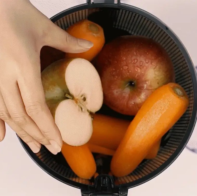 りんごやにんじんがそのまま入る大容量3Lのホッパーを搭載。