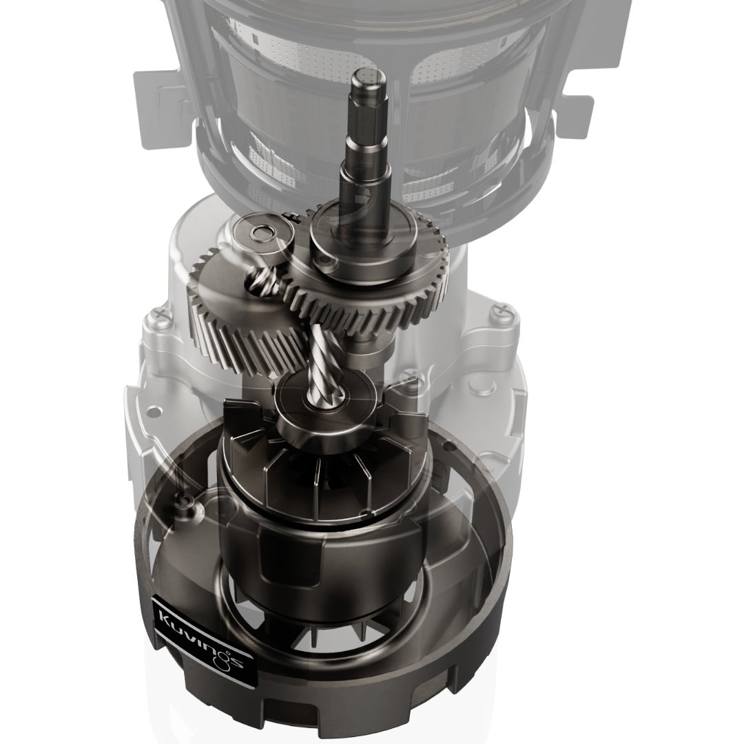 スクリューの先端に搭載された自動カッターが、食材をジュース作りに最適なサイズにカット。その後、スパイラルスクリューが食材を素早く圧搾エリアへ送り込み、よりスムーズで効率的な搾汁を実現します。