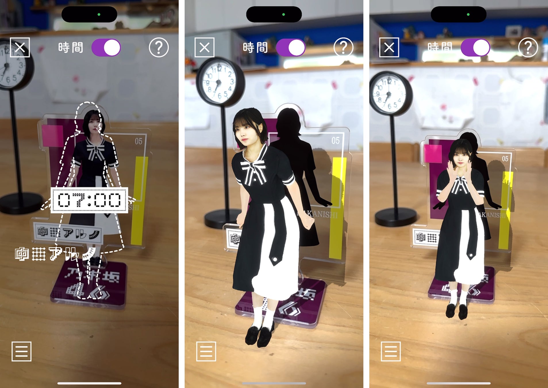 特長:AR技術を活用し、専用アプリを通じてアクリルスタンドから「乃木坂46」のメンバーが目の前に現れる体験を提供