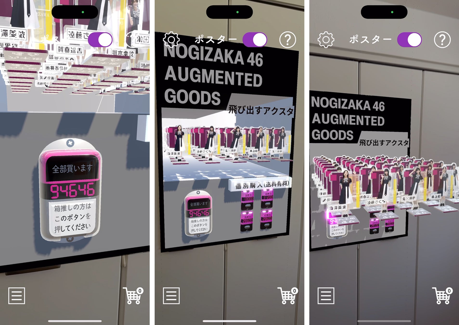 本商品は、AR技術を活用し、専用アプリ「どこでも自販機」を通じて「乃木坂46」のメンバーが目の前に現れる体験を提供するもので、2025年夏季ライブ会場での販売開始から多くの反響をいただいております。特に、遠方からの来場者や、会場に足を運べなかったファンの皆様からの要望を受け、販売期間の延長を決定いたしました。