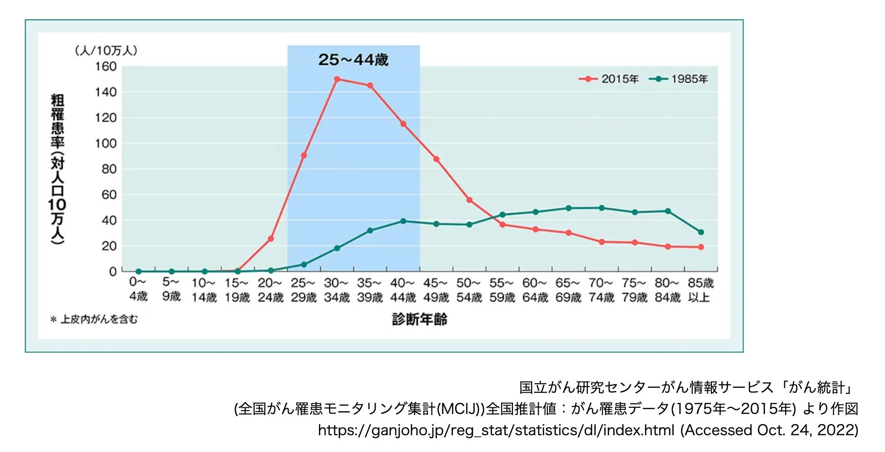 ・15歳→35歳(子宮頸がん発症ピーク※含む上皮内がん)