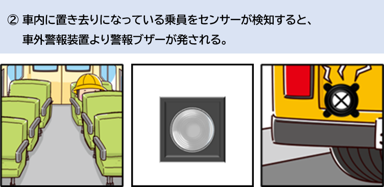 ◆センサーで取り残された乗員を検知し、車外警報を発します。