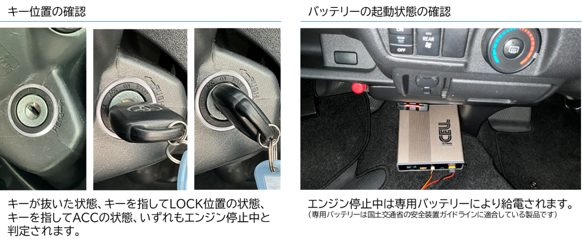 ◆車両エンジンの入切に連動して置き去り防止システムの入切が可能です。