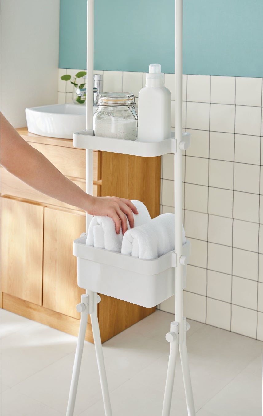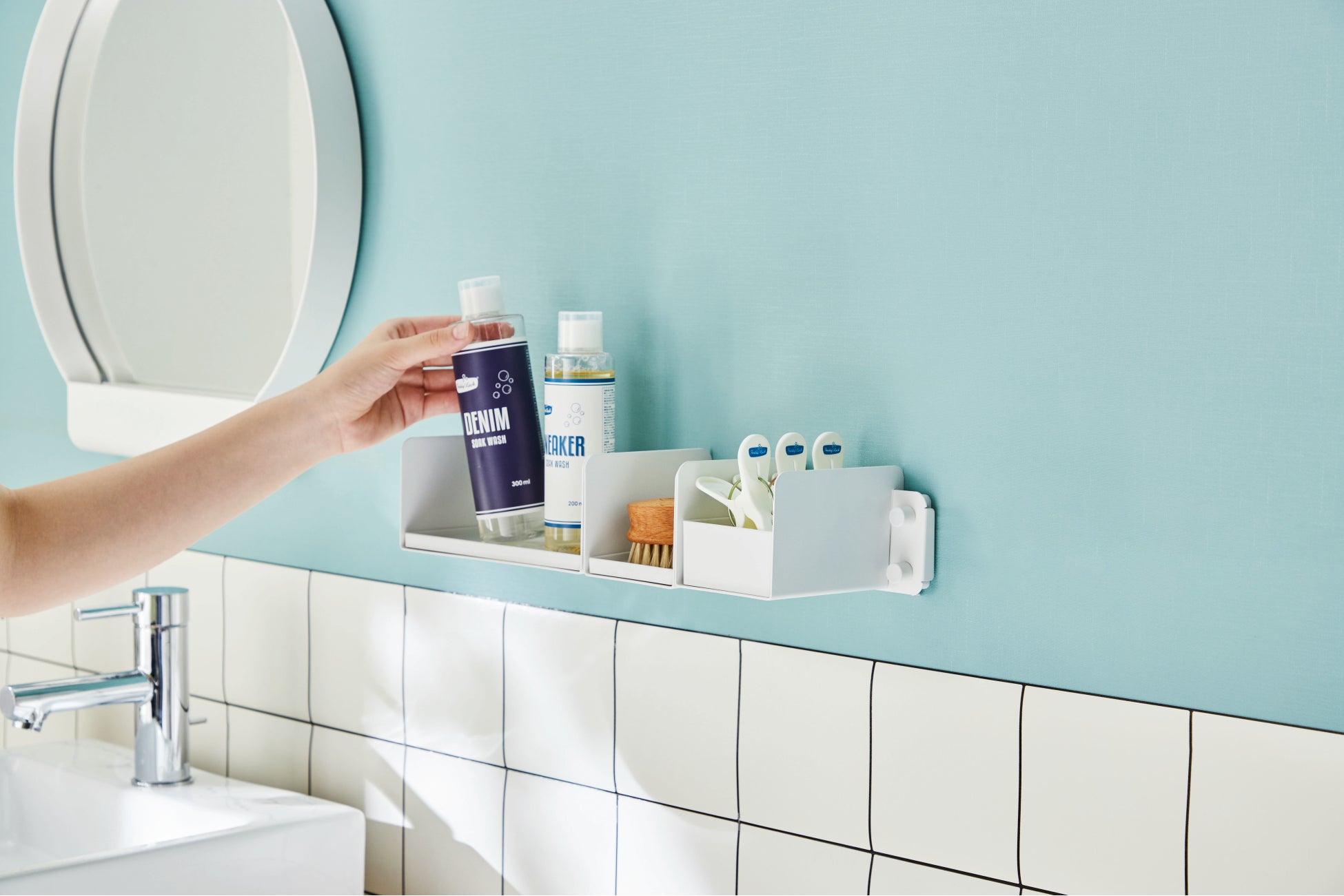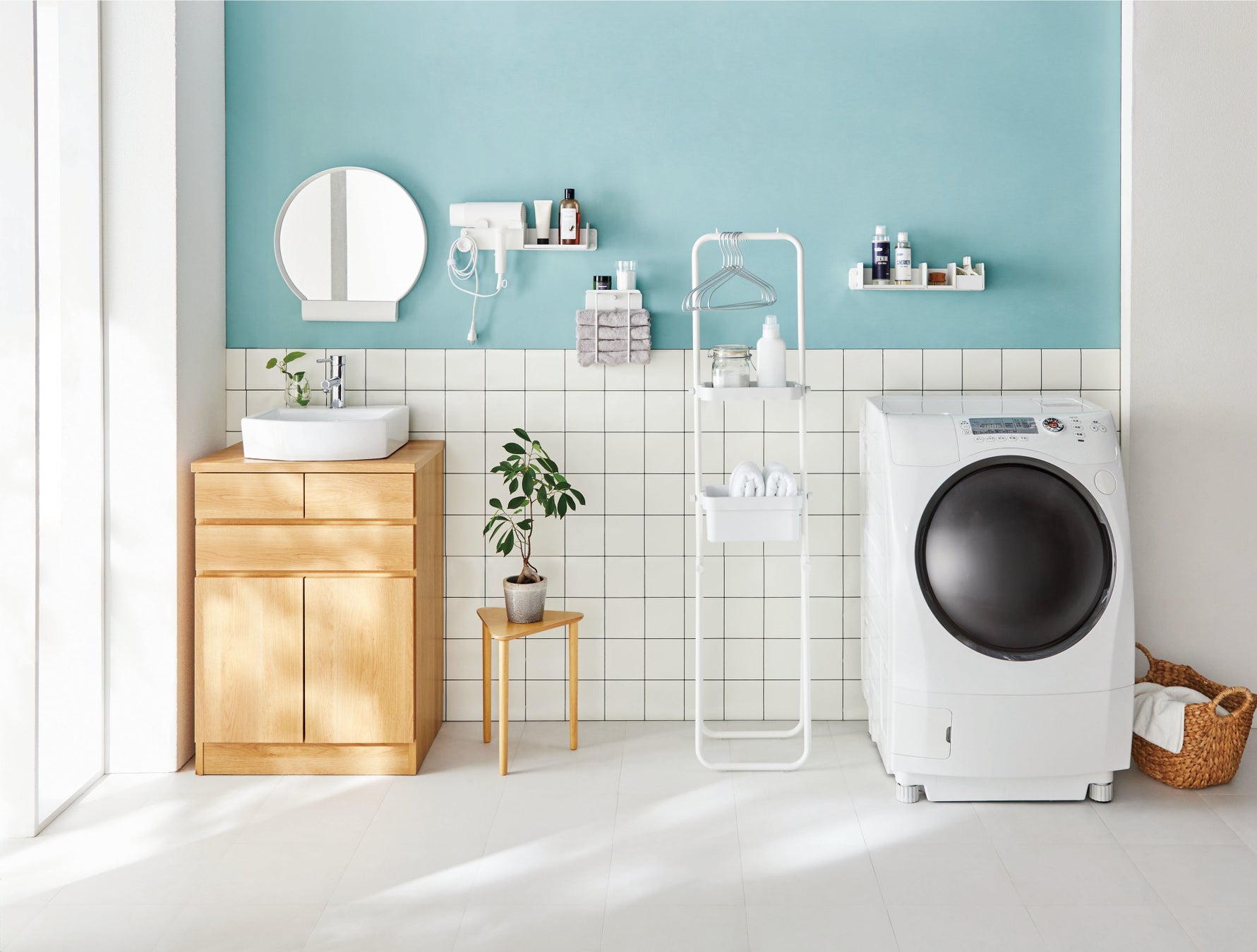 洗面所等の有効活用されていない壁面や空いたスペースに、コンパクトな収納用品を設置することができます。