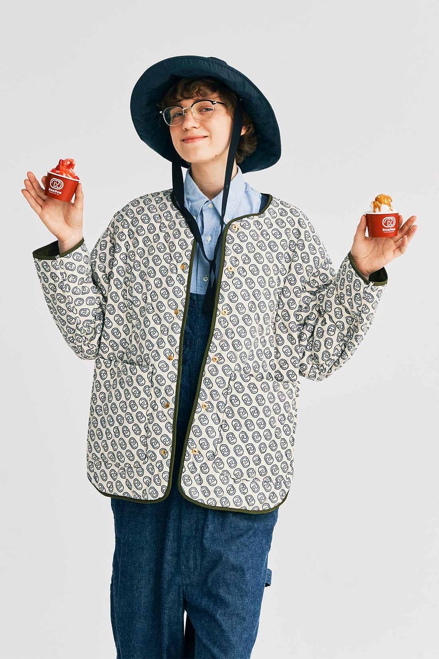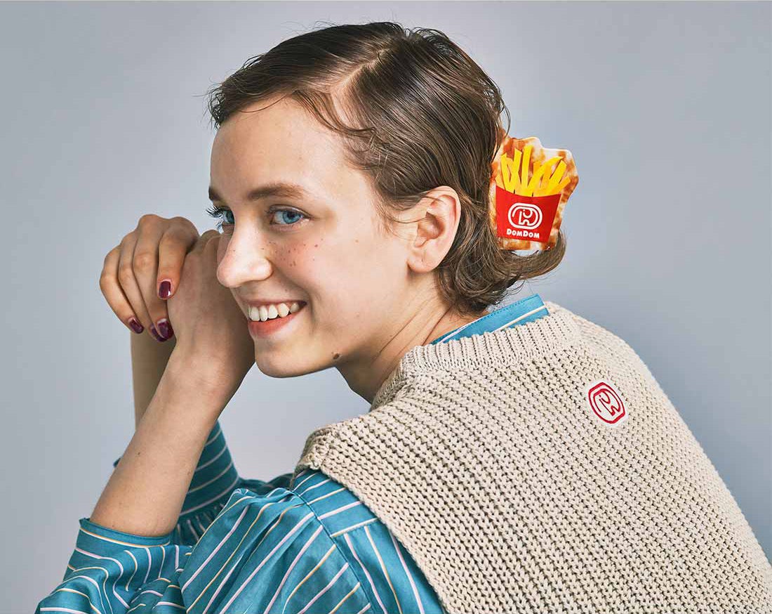 かわいい彼といつも一緒。それだけではドムドムハンバーガー気分が足りないので、脱いだ時に見えるように、背裏にはポテトフライのプリントをあしらっています。