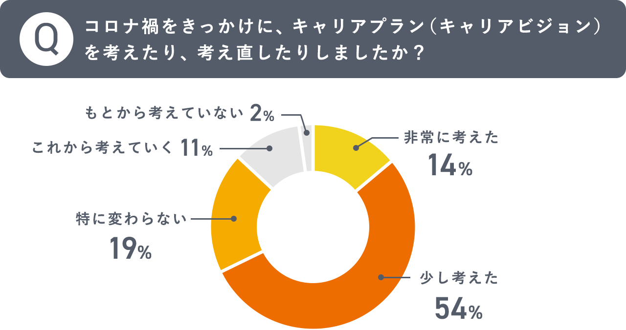 個人のキャリア感に多様性が現れはじめているアフターコロナ時代において、ライフプランに沿ったキャリアプランを描くことや自身の強み・やりがいを言語化し、それらがマッチした業界や職種を自ら選び働くことが重要であると考えられます。