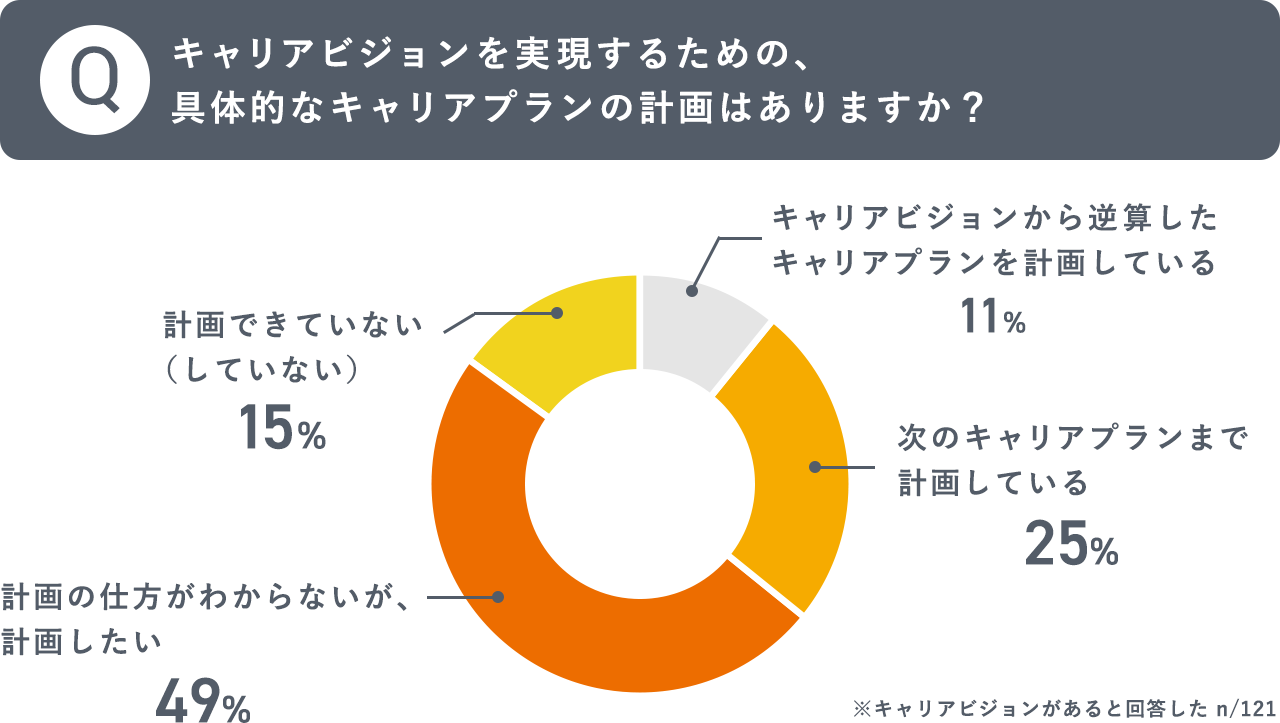 そこで、キャリアビジョンやキャリアプランにおけるアンケートを実施したところ、次のようなことが分かりました。