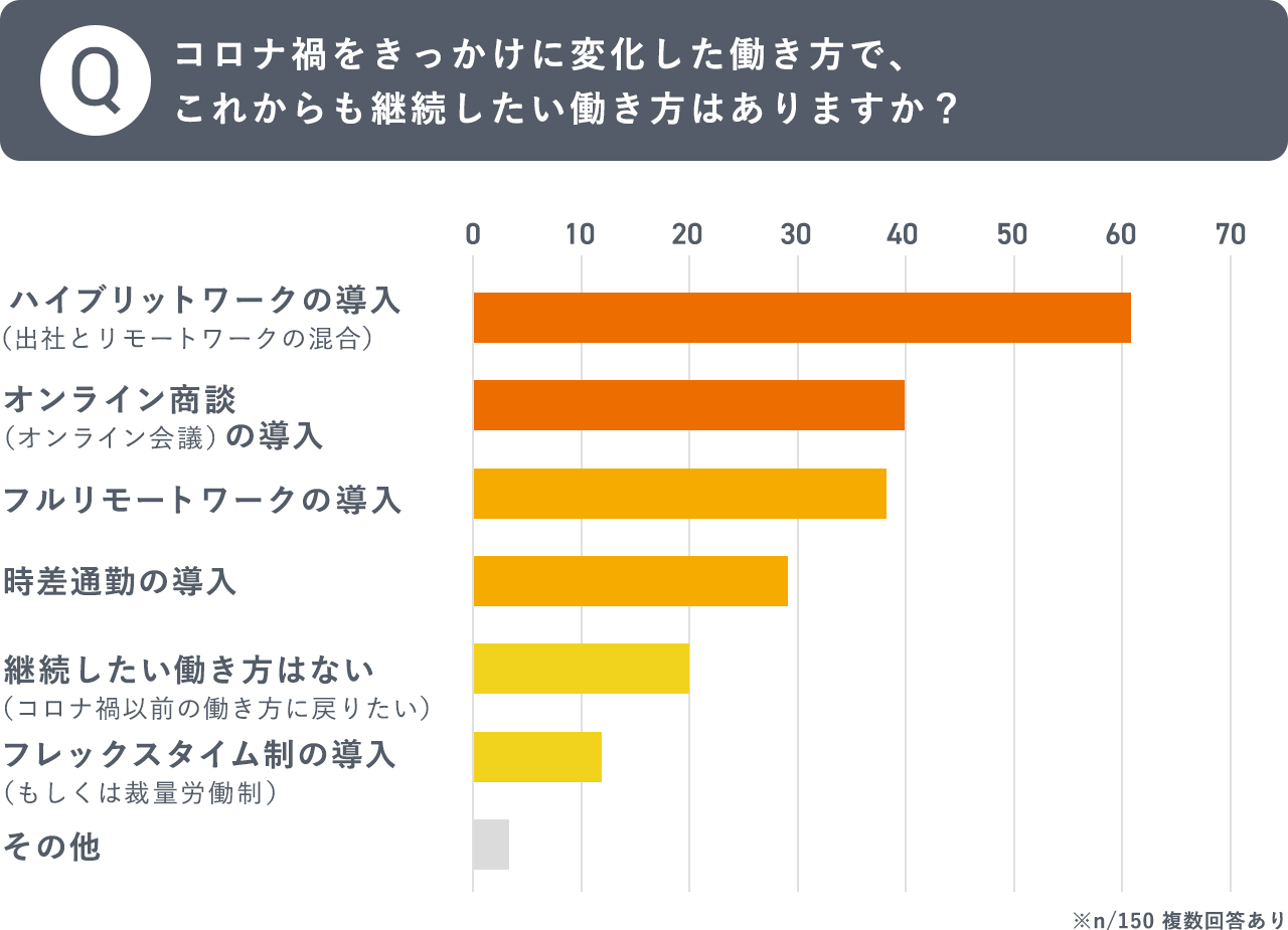 コロナ禍で変化した「働き方」に着目した調査結果では、以下のような結果になりました。