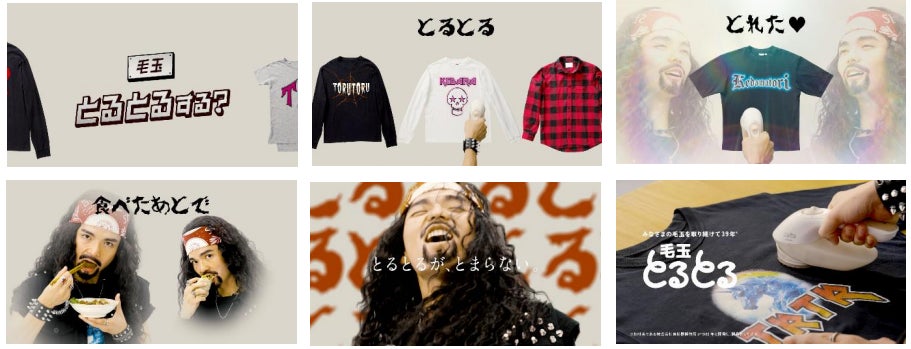 「とるとるが、とまらない。」をキャッチコピーに、「毛玉とるとる」で毛玉が取れた時の快感や、ついクセになってしまう使い心地の良さを表現しています。CMでは、「とる」「とるとる」と続くクセになるリズムと、その合間に次々と流れるさまざまな語感のいい言葉の羅列をお楽しみください。