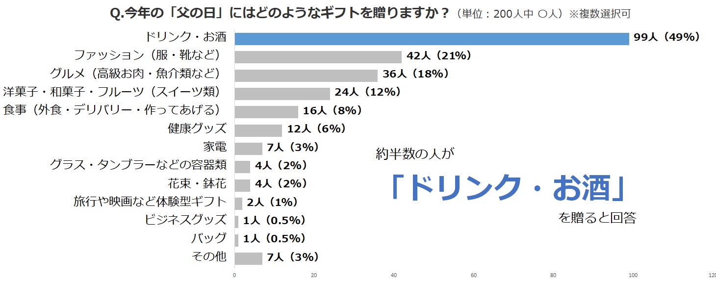 株式会社アーツ(所在地:大阪府吹田市、代表取締役社長:黒木伸治)の通販サイト「Arts Gift みんなが笑顔になるギフト専門店」では、「父の日ギフト」専用ページのオープンに合わせて、インターネット上で200人を対象に父の日ギフトに関するアンケート調査を行いました。その結果とともに、ギフトを贈る人々の動向や本音をお届けします。