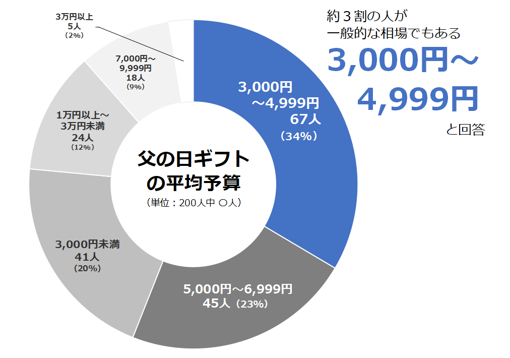 - 父の日ギフトの予算は「3,000円~4,999円」が最多