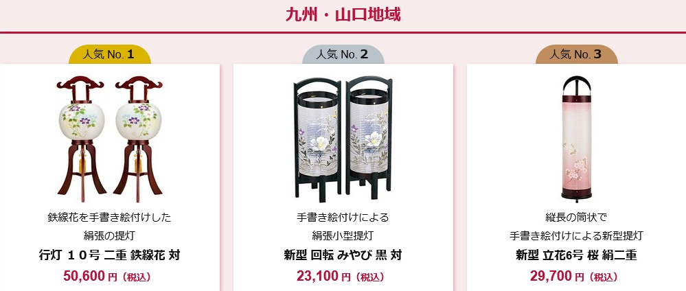 ▼<お盆提灯>地域別お盆提灯人気ランキングと特徴