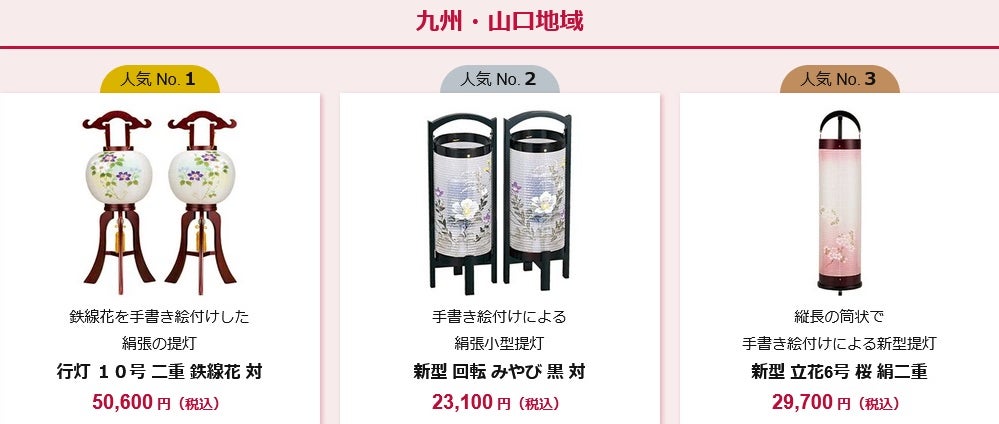 お仏壇・墓石の販売、屋内墓苑の受託販売を手がける株式会社はせがわ(本社:福岡・東京、代表取締役社長:新貝 三四郎)は、2022年のお盆提灯特設サイトに、地域別の人気商品を掲載いたしました。