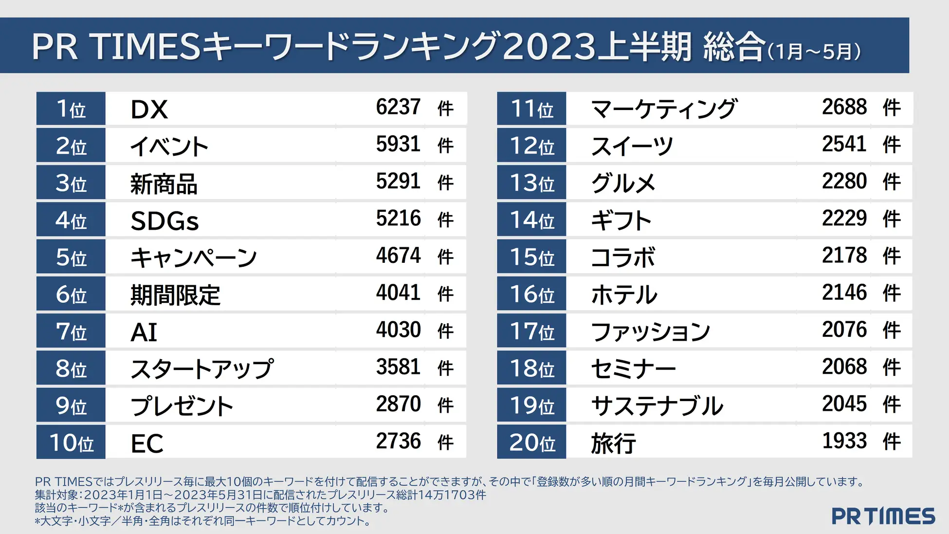 「DX」というキーワードは、PR TIMESキーワードランキング2023上半期の調査で1位となり、