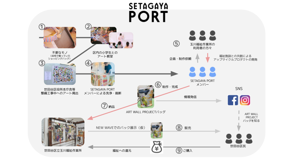 世田谷区内の企業や福祉作業所の方々と共につくられる「ART WALL PROJECT」の活動が、人々の関わりを広げていくきっかけとなると私たちは考えます。