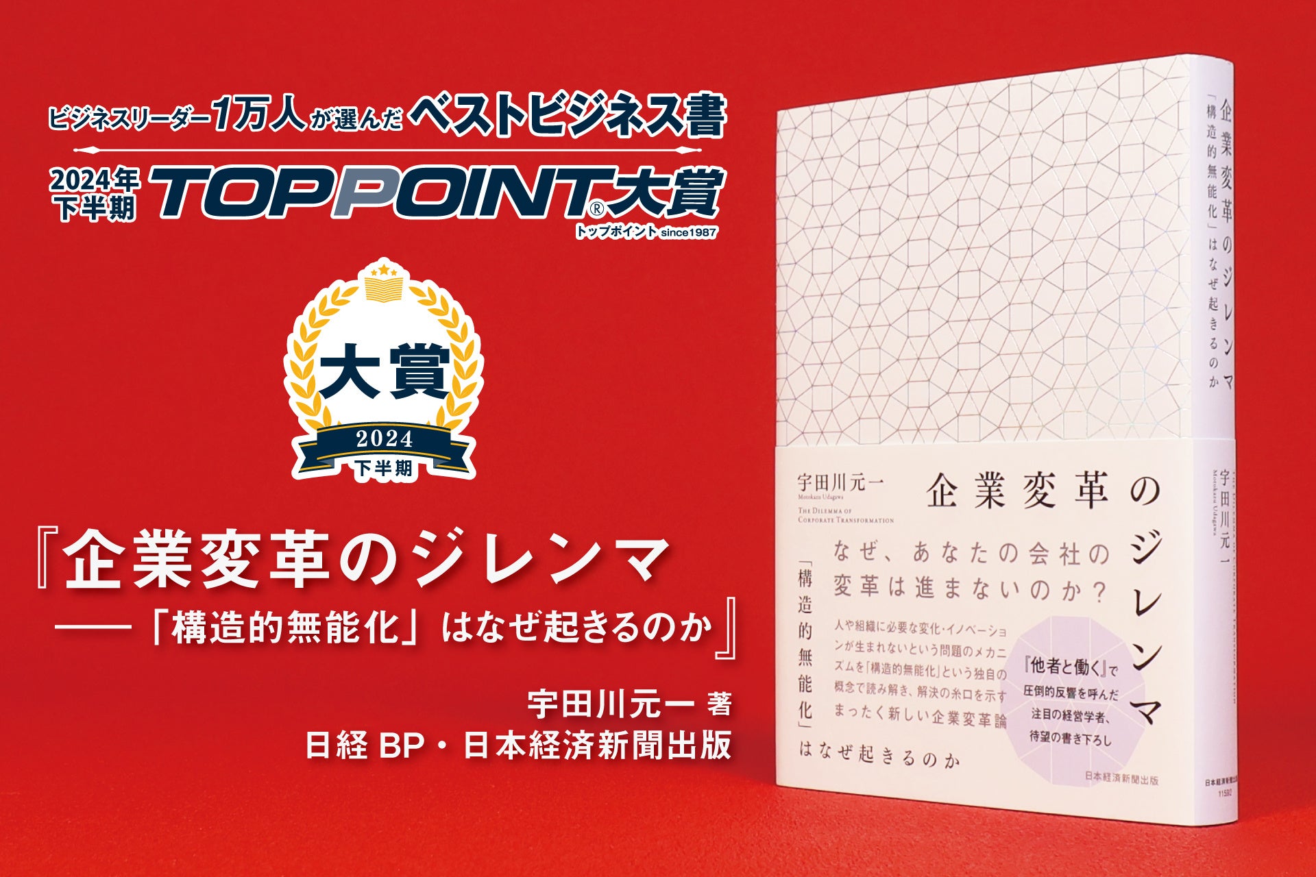 第41回「TOPPOINT大賞」に輝いたのは、『企業変革のジレンマ ――「構造的無能化」はなぜ起きるのか』(宇田川元一 著 / 日経BP・日本経済新聞出版)です。