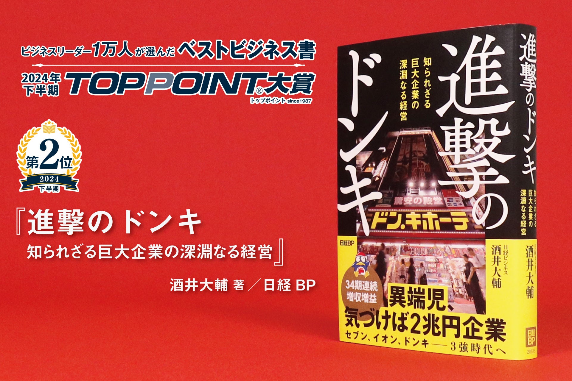 第2位は、今や日本の小売りグループで売上高4位となった「ドン・キホーテ」の経営戦略を明らかにした『進撃のドンキ 知られざる巨大企業の深淵なる経営』(酒井大輔 著/日経BP)です。著者で日経ビジネス記者の酒井氏によれば、ドン・キホーテの強さの秘密は、小売業界の常識を打ち破った“異端企業”ならではの経営戦略にあるといいます。本書では、変幻自在の店づくり、現場への徹底した権限委譲、仕事を「労働」(ワーク)ではなく「競争」(ゲーム)にする、といった同社独自の取り組みが明かされています。