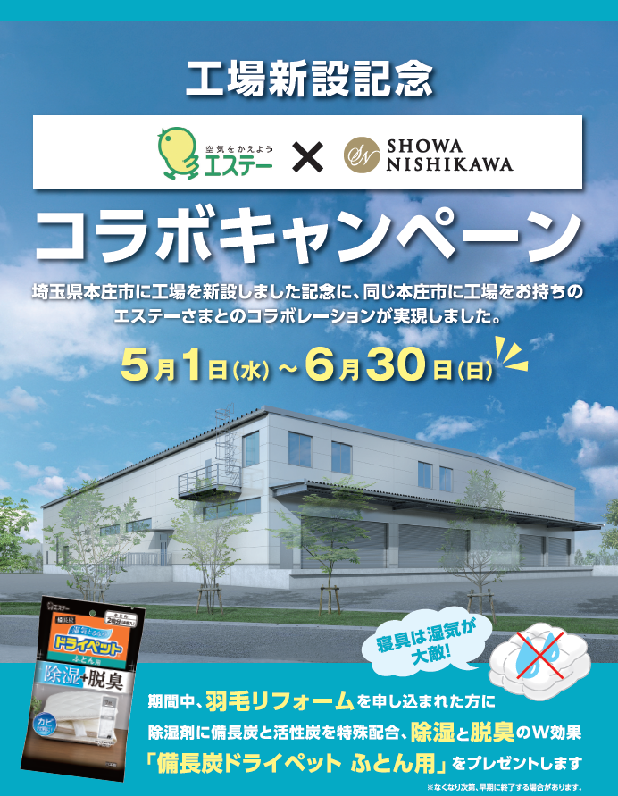 【本庄に工場をもつ!エステー×昭和西川 コラボキャンペーン実施します】
