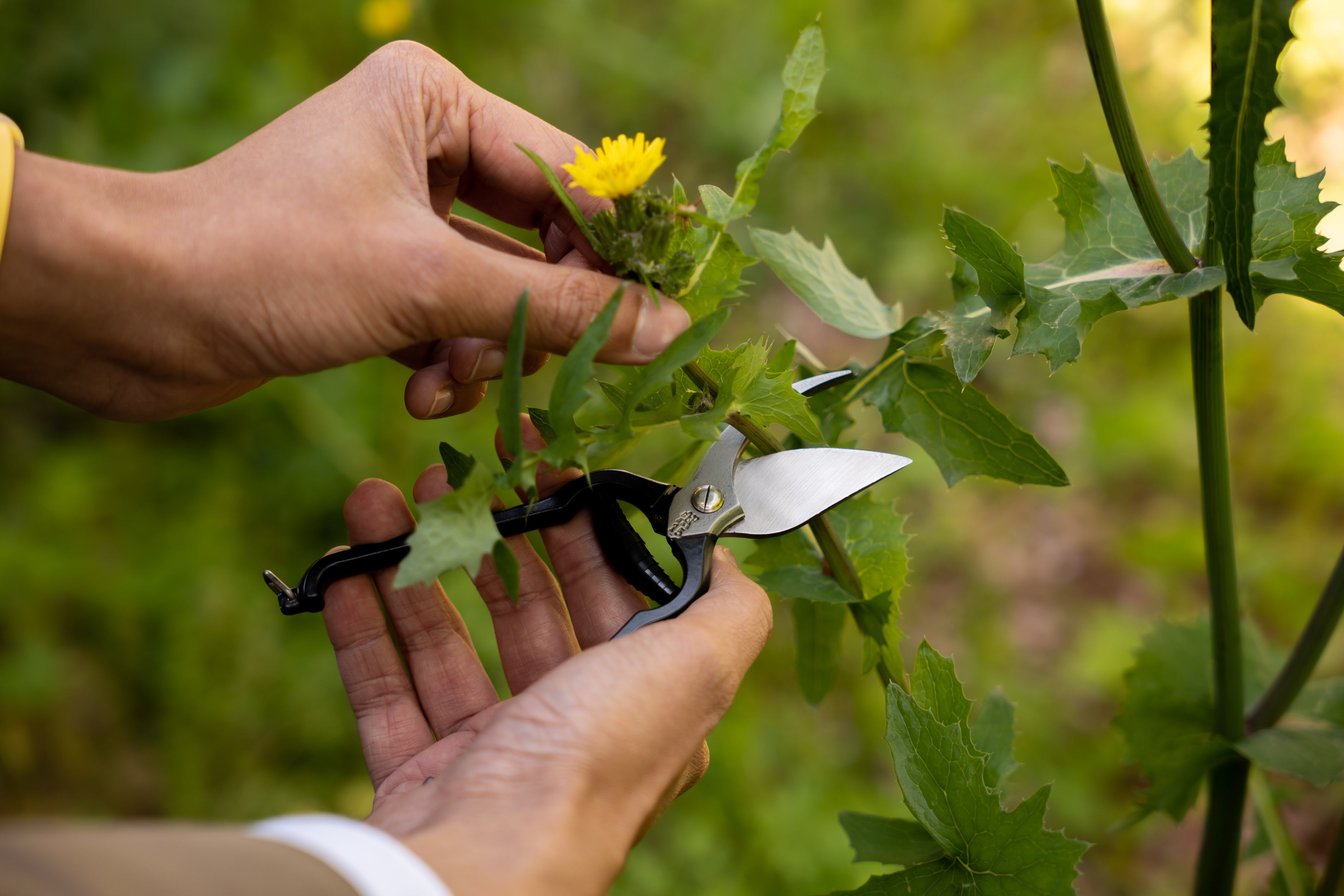 植物を採集、標本にして、鋭い観察眼と天性の画才を発揮して植物画を描く。この活動の右腕になったのが、ヘンケル社(現:ツヴィリング)の剪定バサミでした。
