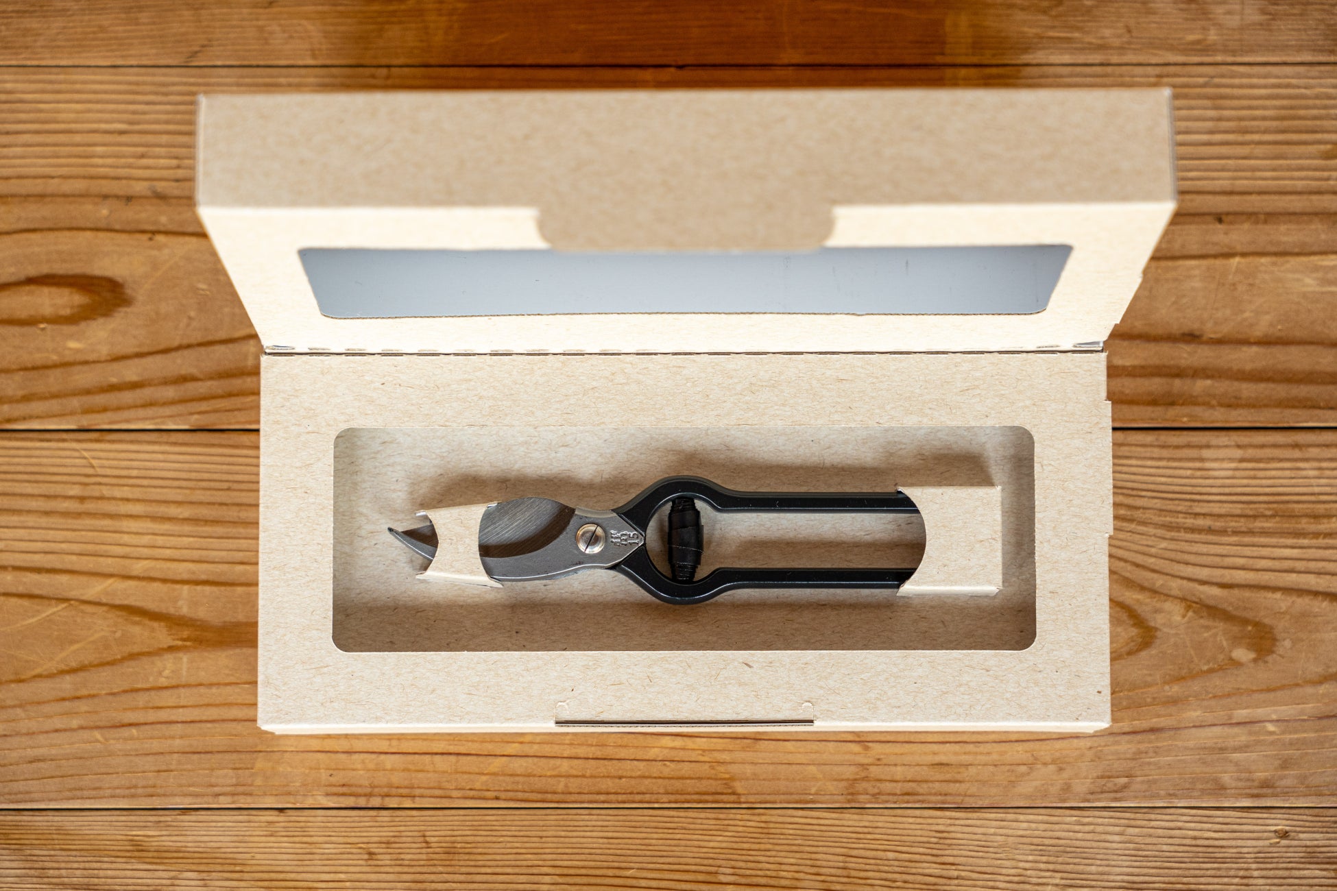 一般的な剪定バサミと比べ小さ目、しかし握りやすい程度には大きい。どんな手にも馴染むデザインで、ポケットに入れて植物観察に出かける際のワクワク感をお楽しみいただけます。シンプル・イズ・ベストを体現したデザインは、機能性と美しさを兼ね備えた逸品です。
