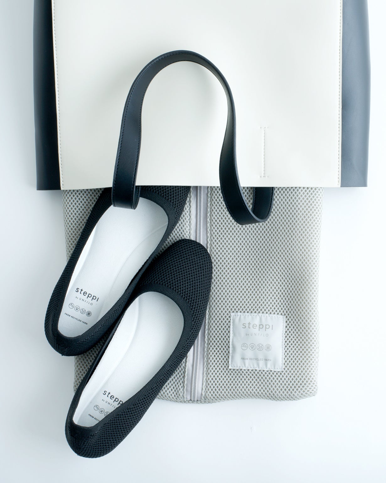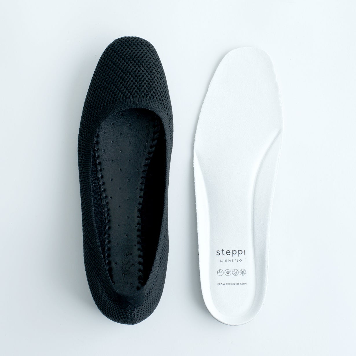 『UNFILO』 で未展開だったシューズアイテムにおいて、新開発商品には消費者意識の高まる「サステナブル」というキーワードを重要視しました。開発に際しては、リサイクル素材の活用など環境に配慮することはもとより、いろんなシーンで履けて洗えて、足を痛めず毎日履けるシューズは女性の味方となり、働くことや出かけることそのものにとってもサステナブルで活躍をサポートできると考えました。社会生活の中でステップを踏むように、このシューズを履いて躍動してほしいです!