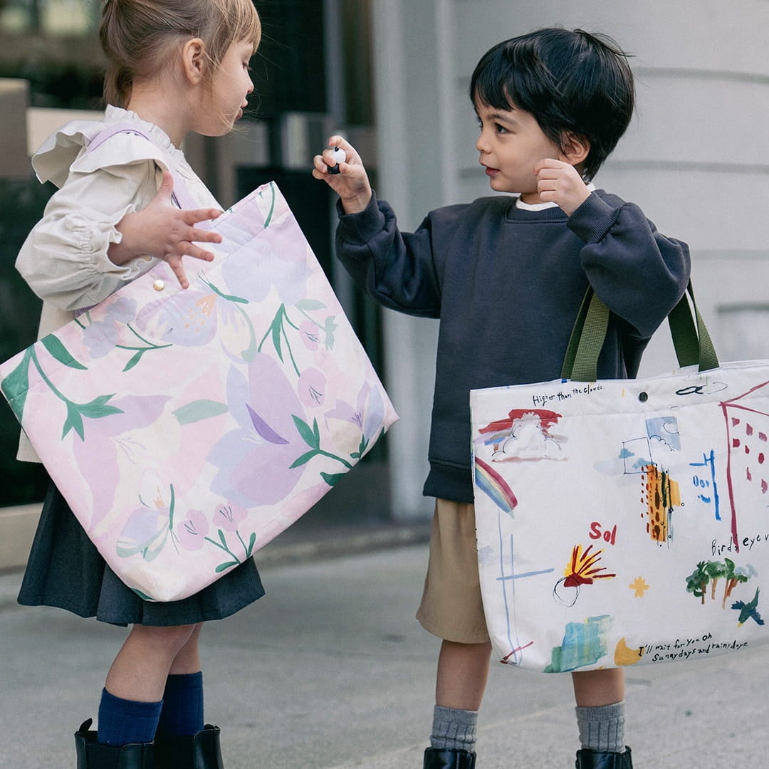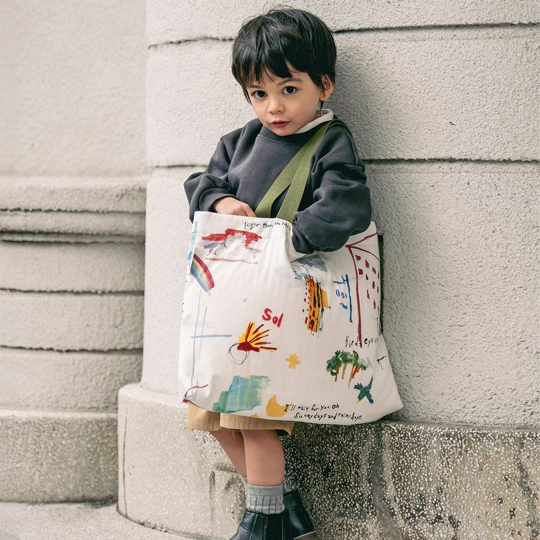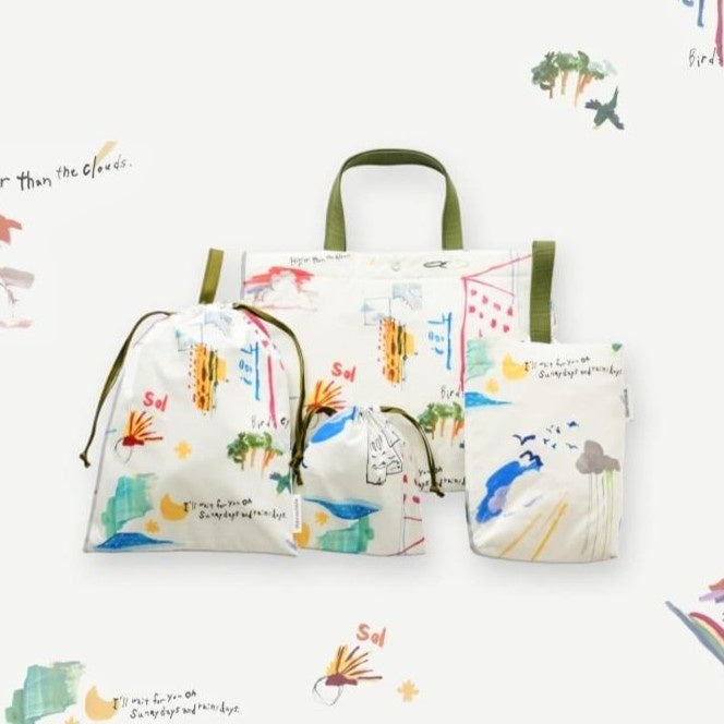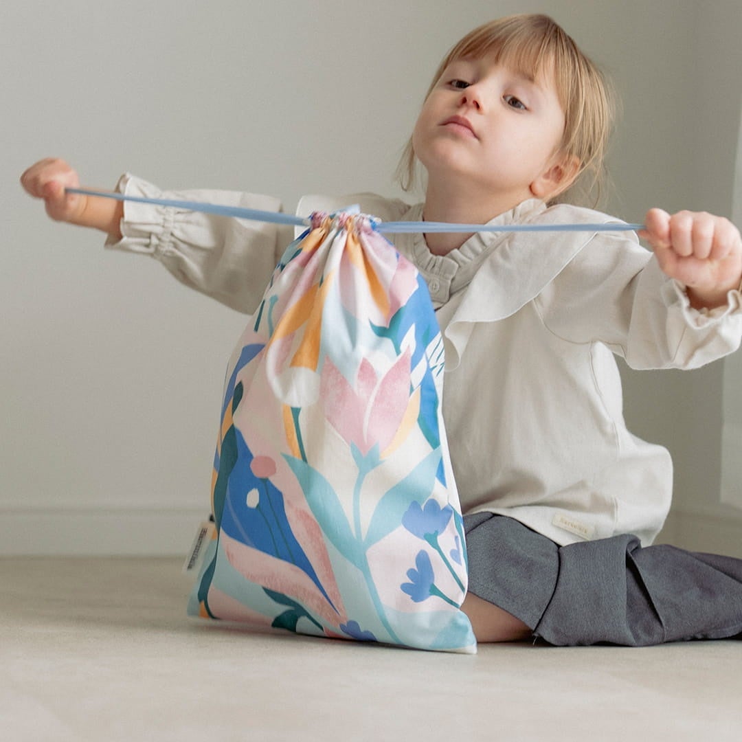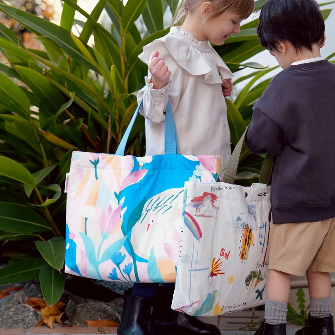 32cm×45 cmで、大きな絵本やスケッチブックも出し入れスムーズ。持ち手はお子さまの手でも持ちやすく柔らかくて丈夫なテープを使用。 通園通学のお道具袋としても、習い事のレッスンバッグとしても大活躍のアイテムです。