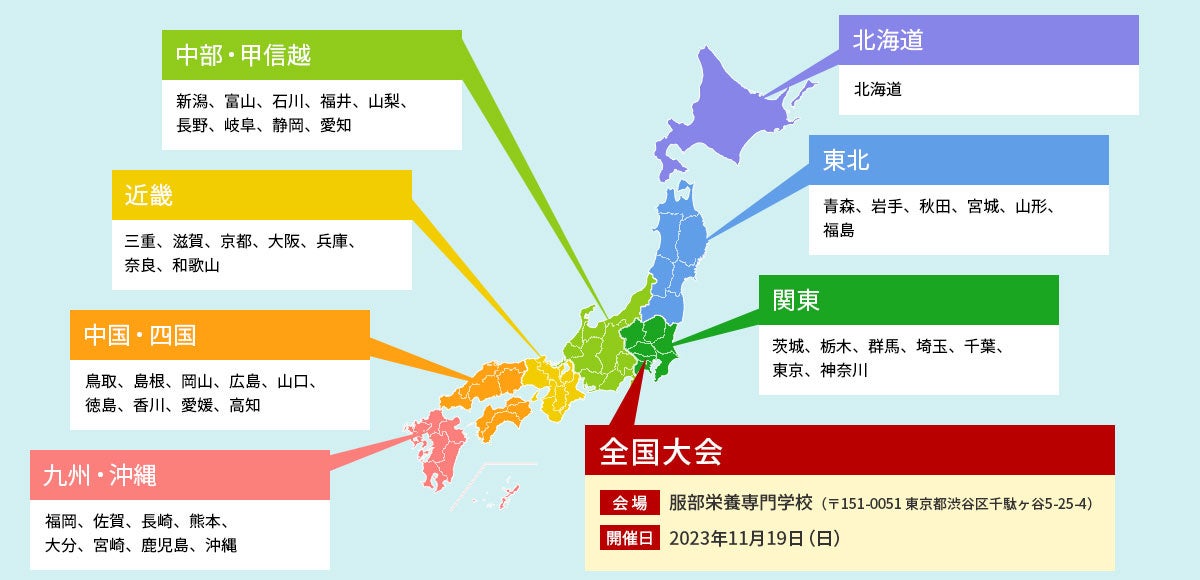 実行委員会形式※2で運営し、これまで全国5ブロック(北海道・東北、関東・甲信越、近畿・北陸・中部、中国・四国、九州・沖縄)に分けて実施してきました。今回はこれを見直します。具体的には北海道と東北を分割するとともに、関東から甲信越、近畿から北陸をそれぞれ中部に集約して7ブロック制(北海道、東北、関東、中部・甲信越、近畿、中国・四国、九州・沖縄)に再編成します。書類審査などによる予選を行い、各ブロックから2チームの計14チームを選出。また、応募数が多かったブロックから1チームを特別枠として選び計15チームが全国大会に出場します。全国大会は11月下旬に東京都内で開き、グランプリと準グランプリを決定します。グランプリには賞金50万円を授与し、上位入賞には商品化に向けたサポートを実施する予定です。