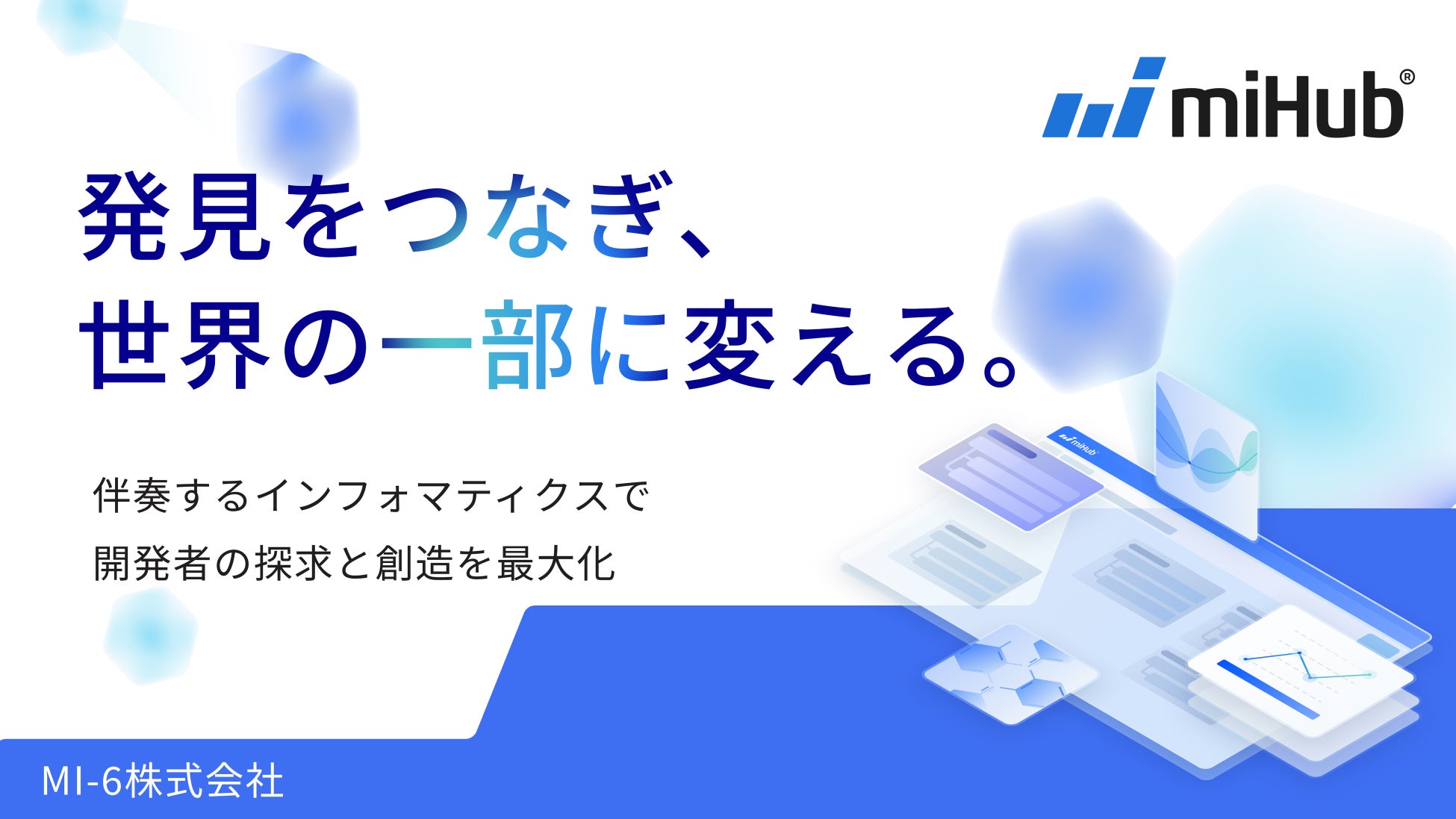 このような状況に対し、miHub®は、研究者一人ひとりの創造性を引き出しながら新たな発見と進化を支えるMIプラットフォームとして、進化を続けています。
