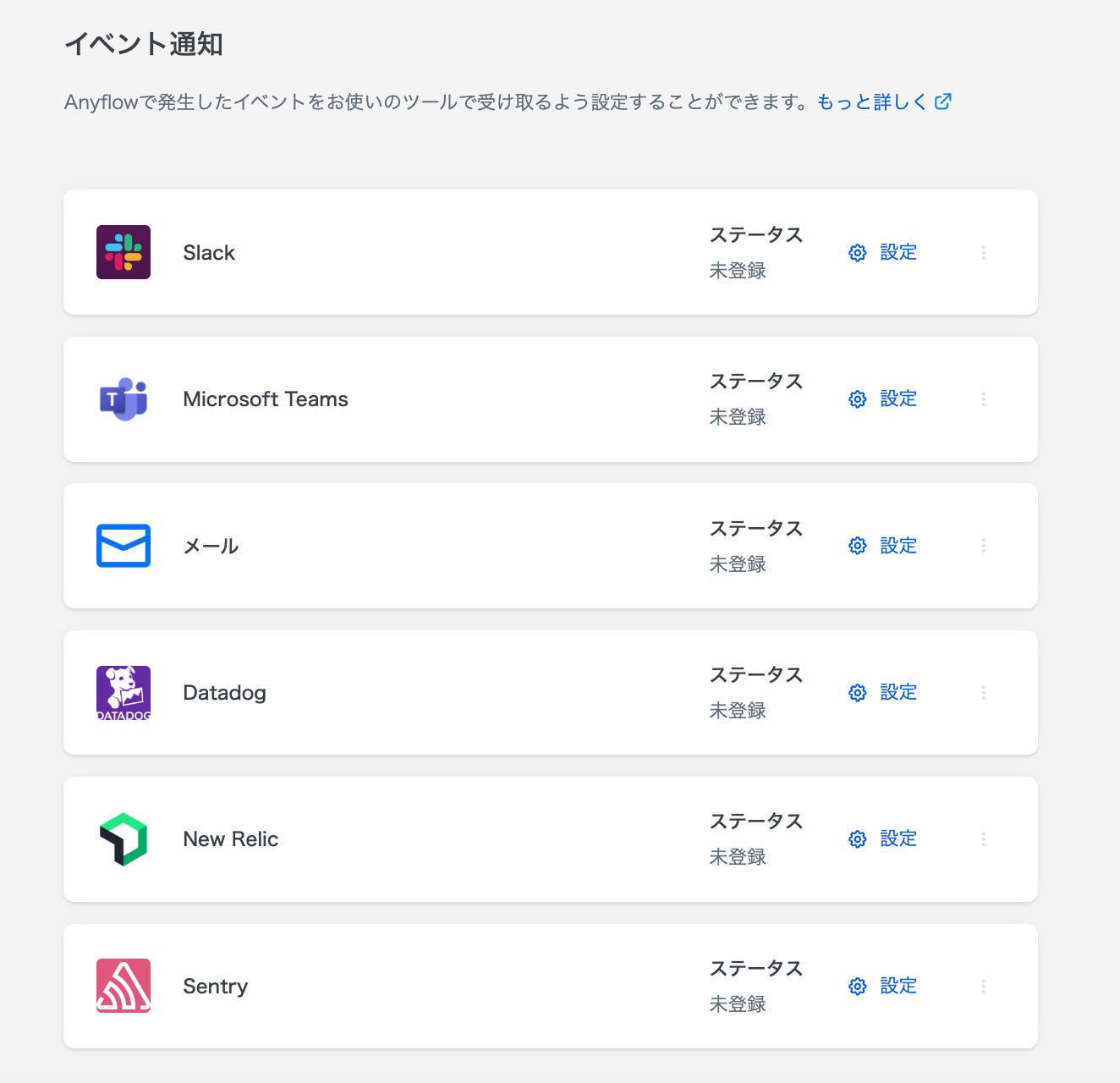 これを解決するためにAnyflow Embed ではこの度、外部連携でエラーが発生した際の通知を以下の6ツールに送信できるようにしました。