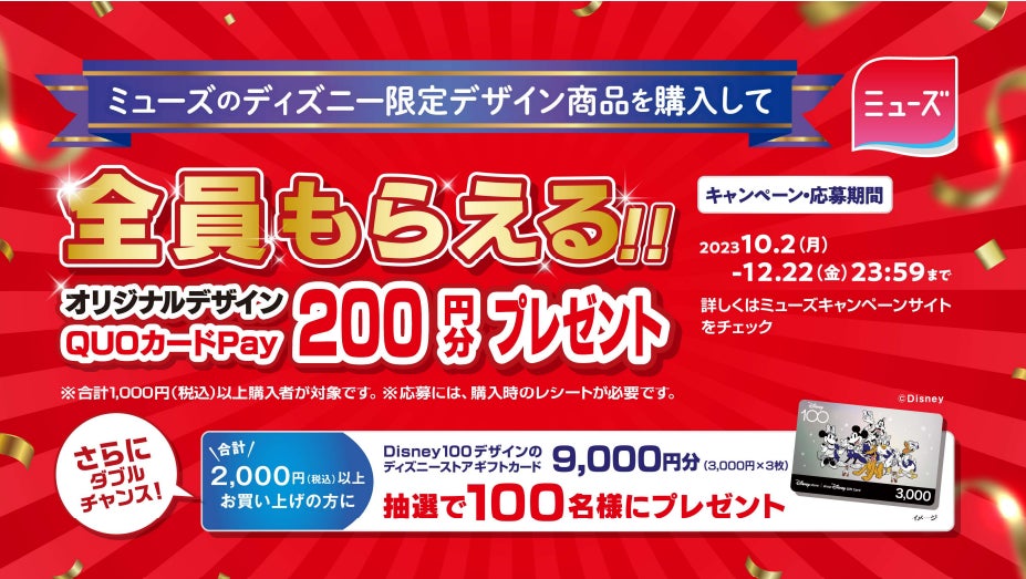 また、ミューズのディズニー限定デザイン商品を購入の応募者全員必ずもらえる「薬用せっけんミューズ ディズニーデザイン商品購入キャンペーン」を10月2日(月)~12月22日(金)で実施!