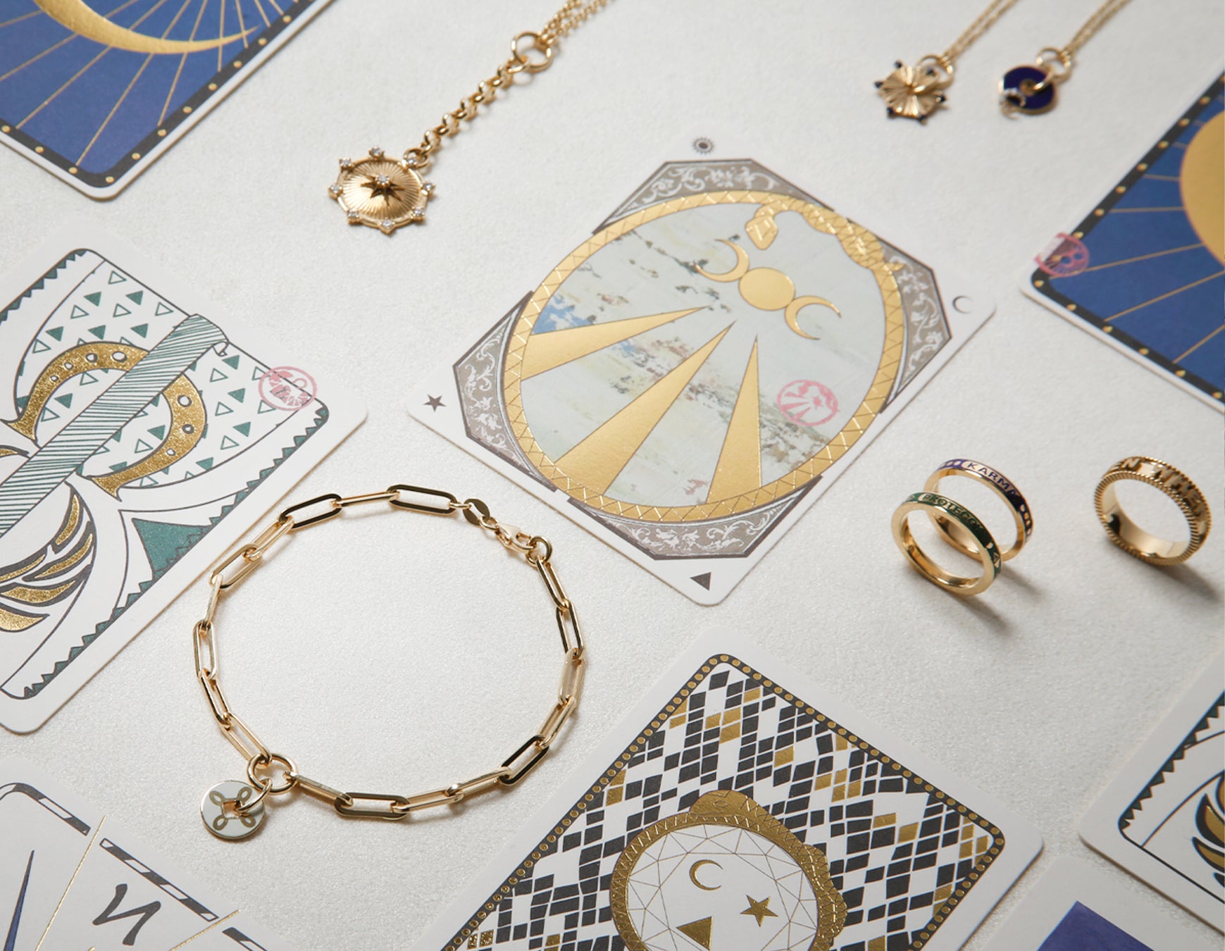 from left) Necklace¥528,000 ¥258,500 ¥192,500 Ring¥225,000 ¥225,000 ¥291,500 Bracelet¥368,500(全て税込)/18KYG、Enamel(一部 Diamond、Sapphire)