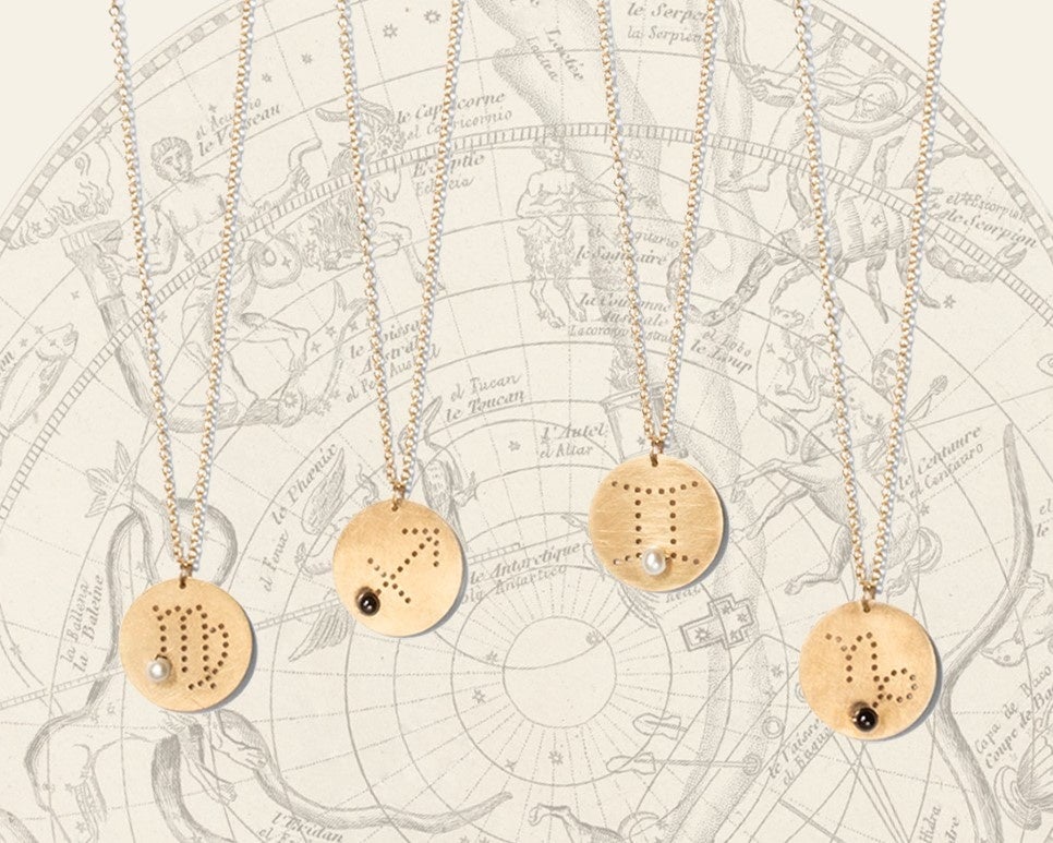 from left) VIRGO 乙女座、SAGITTARIUS 射手座、GEMINI 双子座、CAPRICORN 山羊座 各¥162,800(税込)/18KYG、Pearl or Onyx