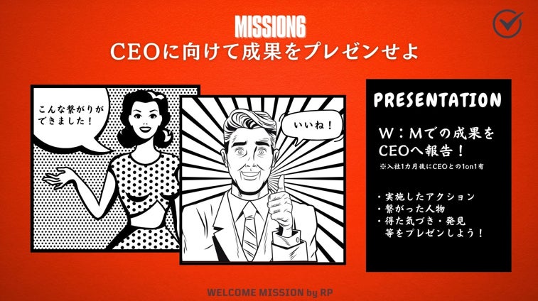 ・ウェルカムミッションの成果をCEOに向けて自由にプレゼン