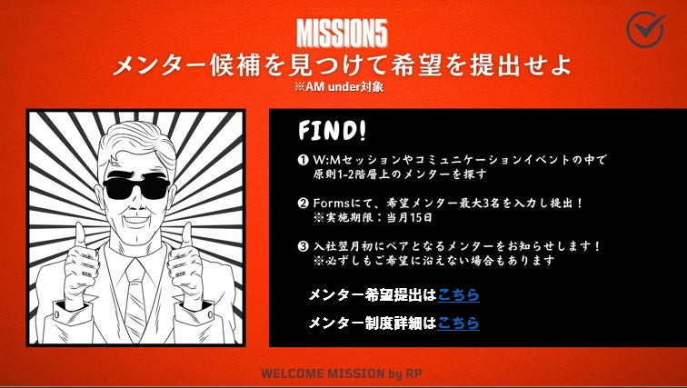 ・MISSION4までで繋がりを得た既存社員の中から、メンターを希望