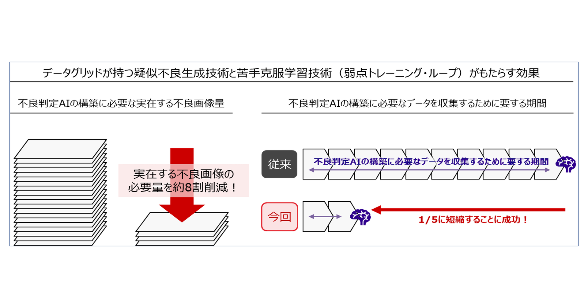 データグリッドが開発する疑似不良生成技術により、不良判定AIを作成するために必要な実在する不良データ量を8割削減することに成功