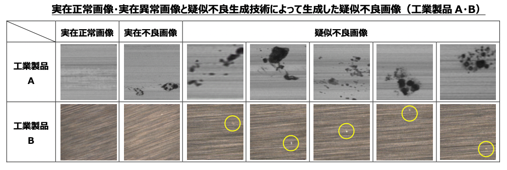 この技術を使った疑似不良生成AIを用いて不良データを大量に生成することで、実在する不良データがごく僅かしかない状況でも不良の学習を可能にすべく、開発を進めています。