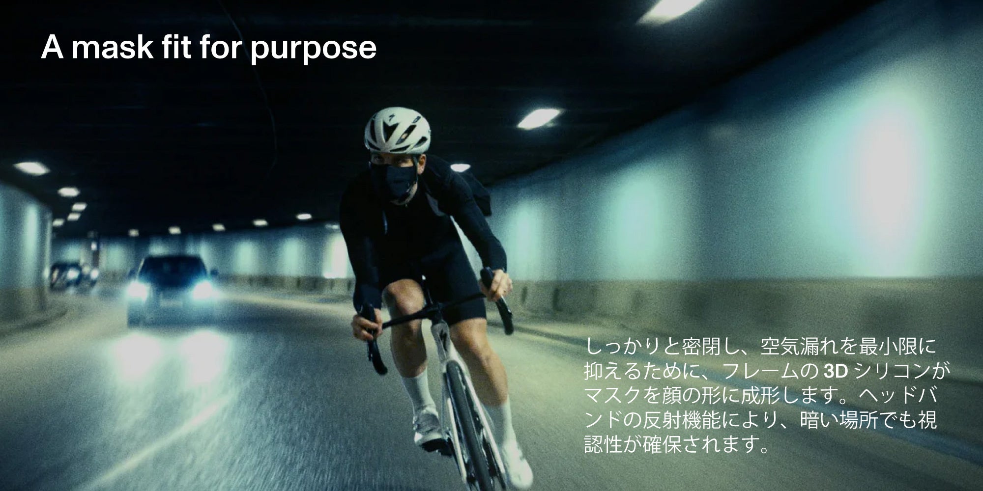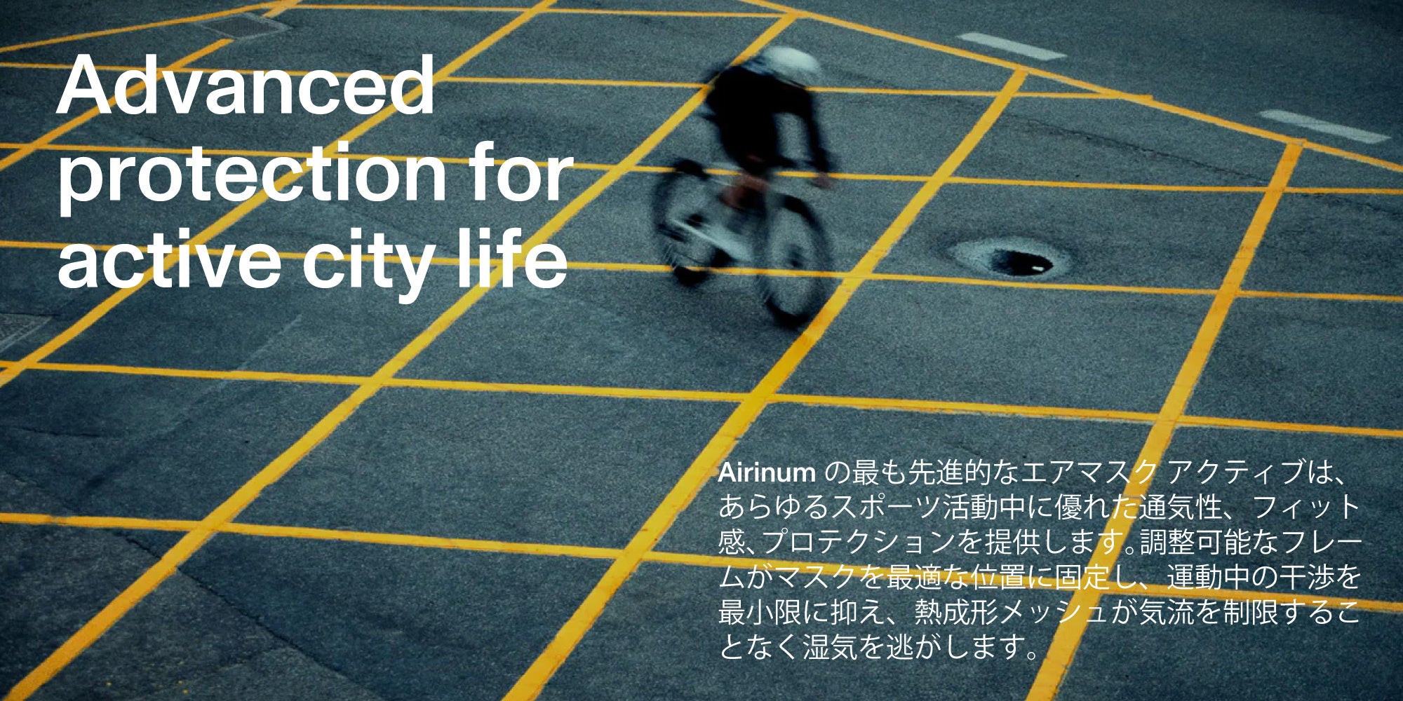 トップアスリート用の高性能マスク エアマスク アクティブ。KN95認定の強力な保護性能ながら、マスク装着による運動中の息苦しさや違和感を極限まで排除した究極のスポーツ用マスクです。